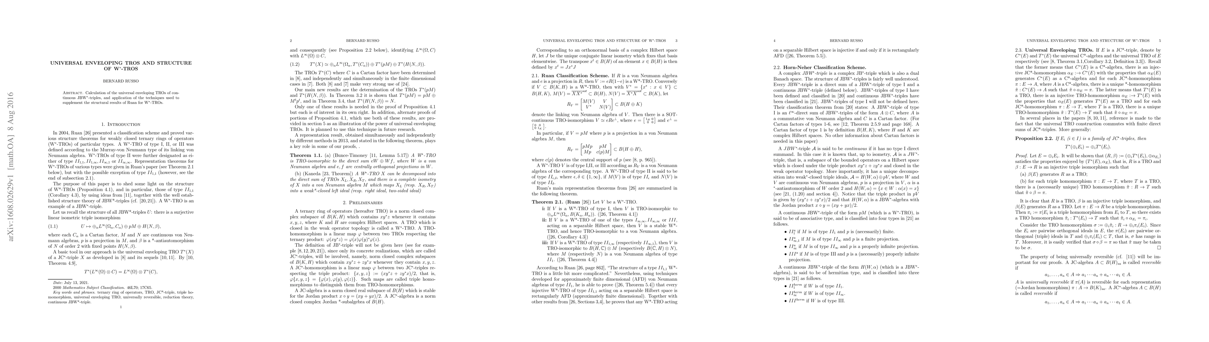 Calculation of the universal enveloping TROs of continuous JBW$*-triples, and application of the techniques used to supplement the structural results of Ruan for W*-TROs.