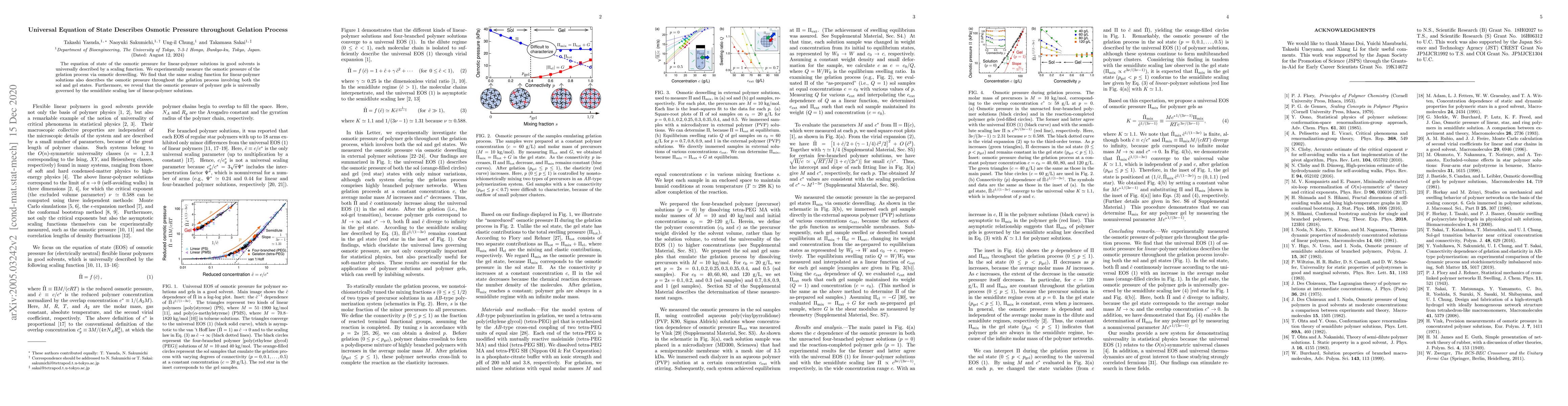 This study reveals a universal equation of state describing osmotic pressure in linear-polymer solutions during gelation, showing that the same scaling function applies across both sol and gel states. The findings confirm that polymer gel osmotic pressure follows the semidilute scaling law of linear-polymer solutions.