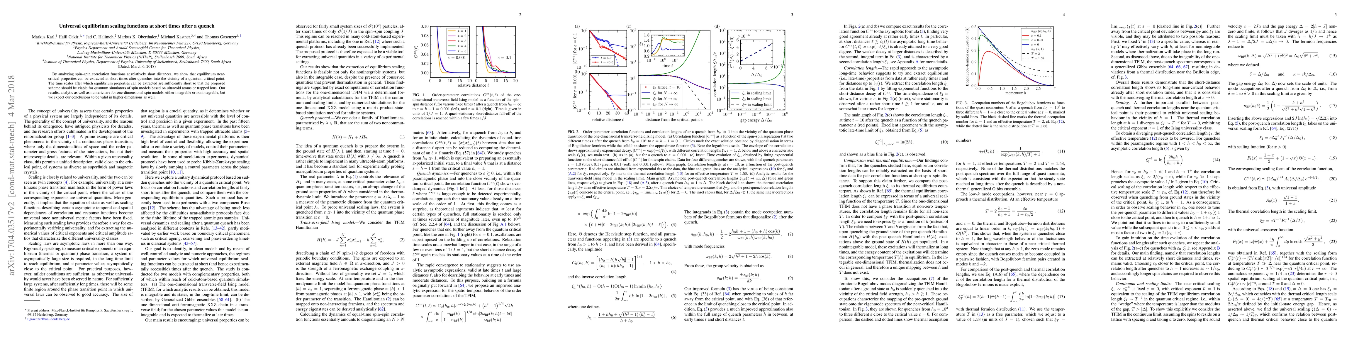 This paper demonstrates that equilibrium near-critical properties can be extracted from spin-spin correlation functions shortly after a quench into a quantum critical point, suggesting a viable method for quantum simulators. The findings, applicable to both one-dimensional integrable and nonintegrable spin models, are expected to extend to higher dimensions.