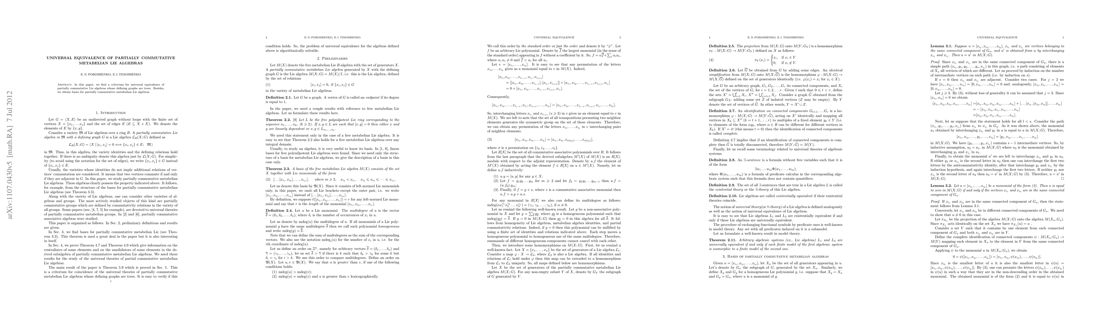 In this paper, we find a criterium for universal equivalence of partially commutative Lie algebras whose defining graphs are trees. Besides, we obtain bases for partially commutative metabelian Lie algebras.