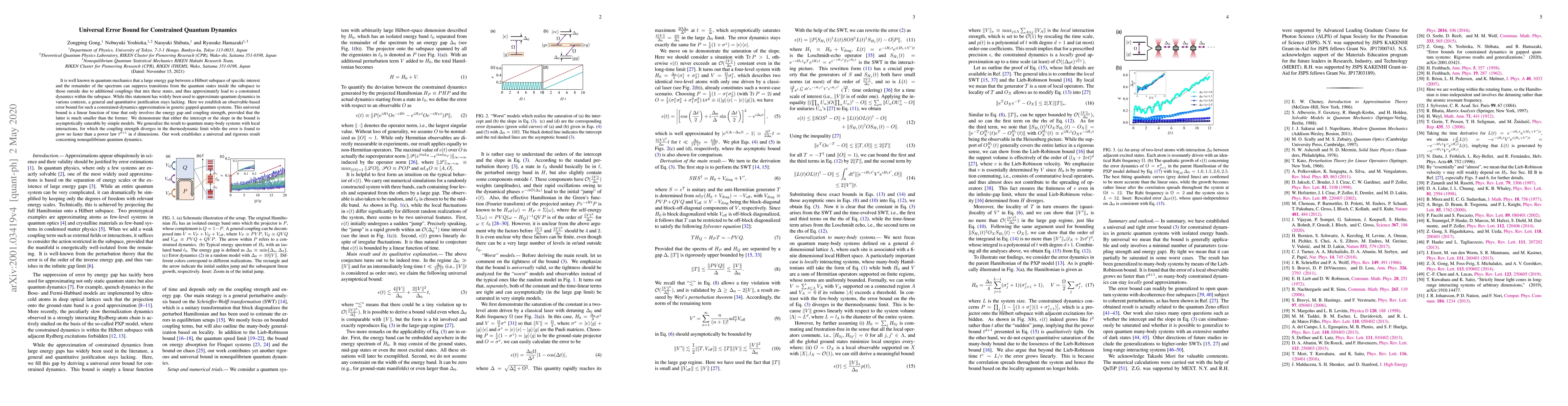 This paper establishes a universal error bound for constrained quantum dynamics in systems with a large energy gap, showing that the approximation error grows linearly with time and is dependent on the energy gap and coupling strength. The result is generalized to quantum many-body systems, demonstrating that error growth is bounded by a power law in dimensions.