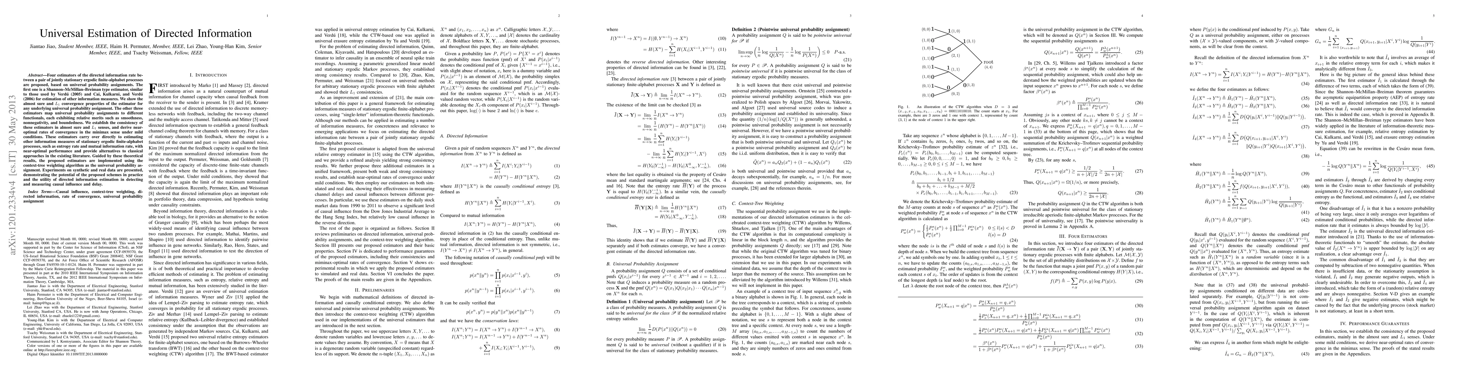 This paper introduces four new estimators for directed information rate in jointly stationary ergodic processes, showing they converge almost surely and in L1 sense, with potential applications in detecting causal influence and delay.