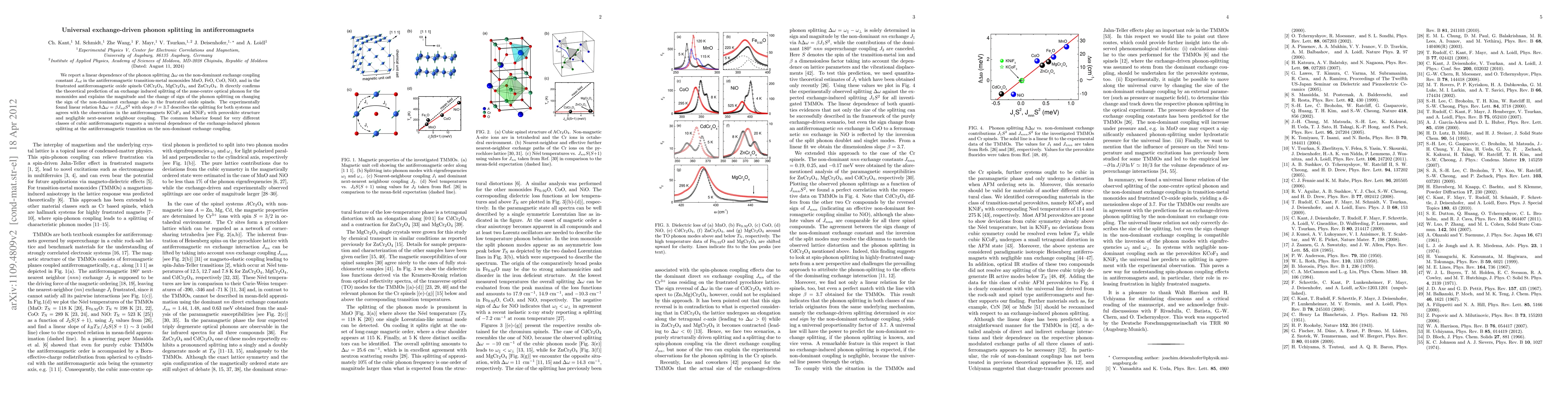 We report a linear dependence of the phonon splitting \Delta\omega on the non-dominant exchange coupling constant J_{nd} in the antiferromagnetic transition-metal monoxides MnO, FeO, CoO, NiO, and in the frustrated antiferromagnetic oxide spinels CdCr2O4, MgCr2O4, and ZnCr2O4. It directly confirms the theoretical prediction of an exchange induced splitting of the zone-centre optical phonon for the monoxides and explains the magnitude and the change of sign of the phonon splitting on changing the sign of the non-dominant exchange also in the frustrated oxide spinels. The experimentally found linear relation \hbar\Delta\omega = \beta J_{nd} S^2 with slope \beta = 3.7 describes the splitting for both systems and agrees with the observations in the antiferromagnets KCoF3 and KNiF3 with perovskite structure and negligible next-nearest neighbour coupling. The common behavior found for very different classes of cubic antiferromagnets suggests a universal dependence of the exchange-induced phonon splitting at the antiferromagnetic transition on the non-dominant exchange coupling.