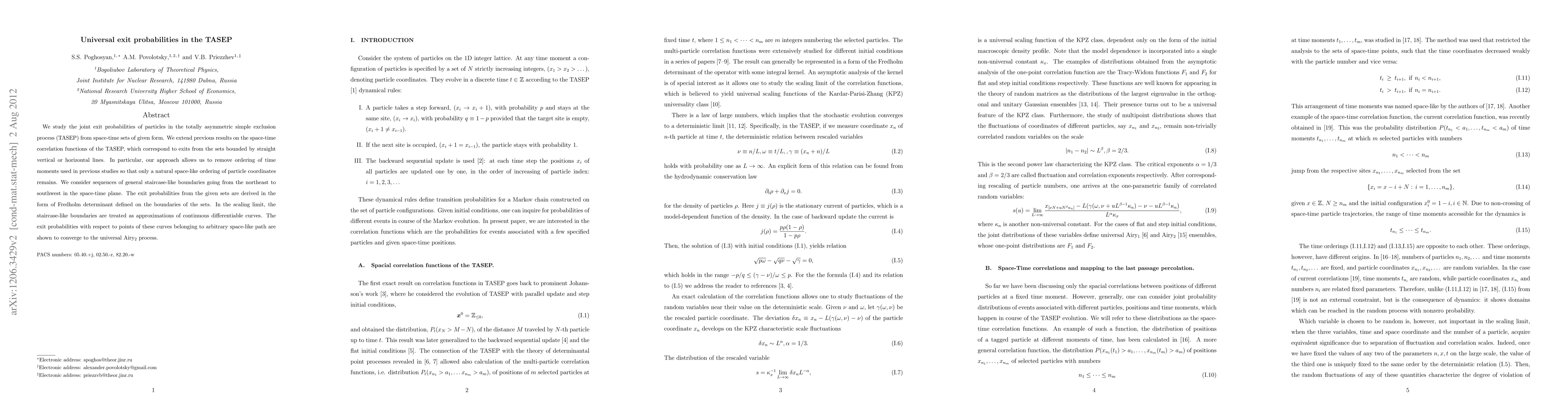 The study of exit probabilities in the TASEP reveals that for sequences of general staircase-like boundaries, these probabilities converge to the universal Airy2 process in the scaling limit.