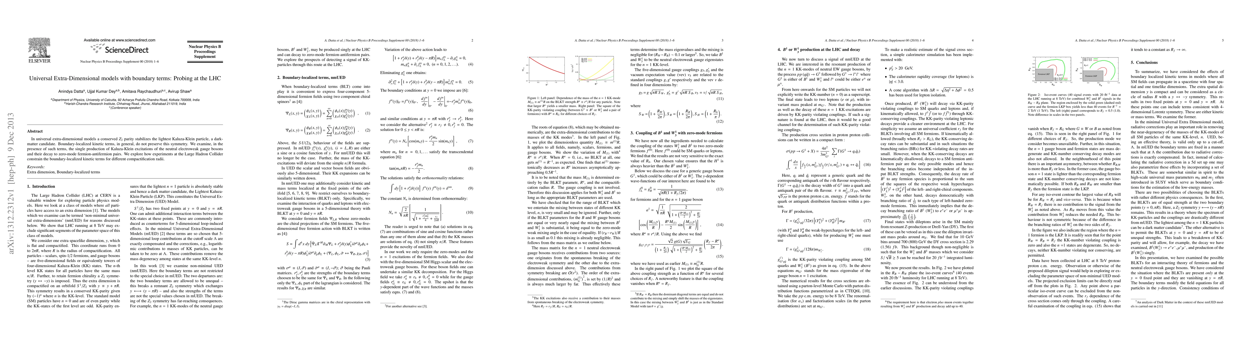 In universal extra-dimensional models a conserved Z_2 parity stabilizes the lightest Kaluza-Klein particle, a dark-matter candidate. Boundary-localized kinetic terms, in general, do not preserve this symmetry. We examine, in the presence of such terms, the single production of Kaluza-Klein excitations of the neutral electroweak gauge bosons and their decay to zero-mode fermion-antifermion pairs. We explore how experiments at the Large Hadron Collider constrain the boundary-localized kinetic terms for different compactification radii.