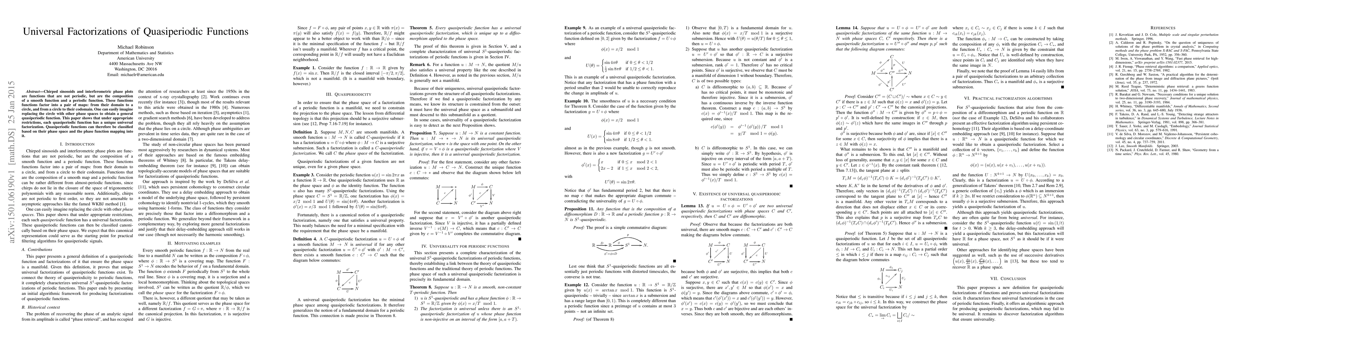 Chirped sinosoids and interferometric phase plots are functions that are not periodic, but are the composition of a smooth function and a periodic function. These functions functions factor into a pair of maps: from their domain to a circle, and from a circle to their codomain. One can easily imagine replacing the circle with other phase spaces to obtain a general quasiperiodic function. This paper shows that under appropriate restrictions, each quasiperiodic function has a unique universal factorization. Quasiperiodic functions can therefore be classified based on their phase space and the phase function mapping into it.