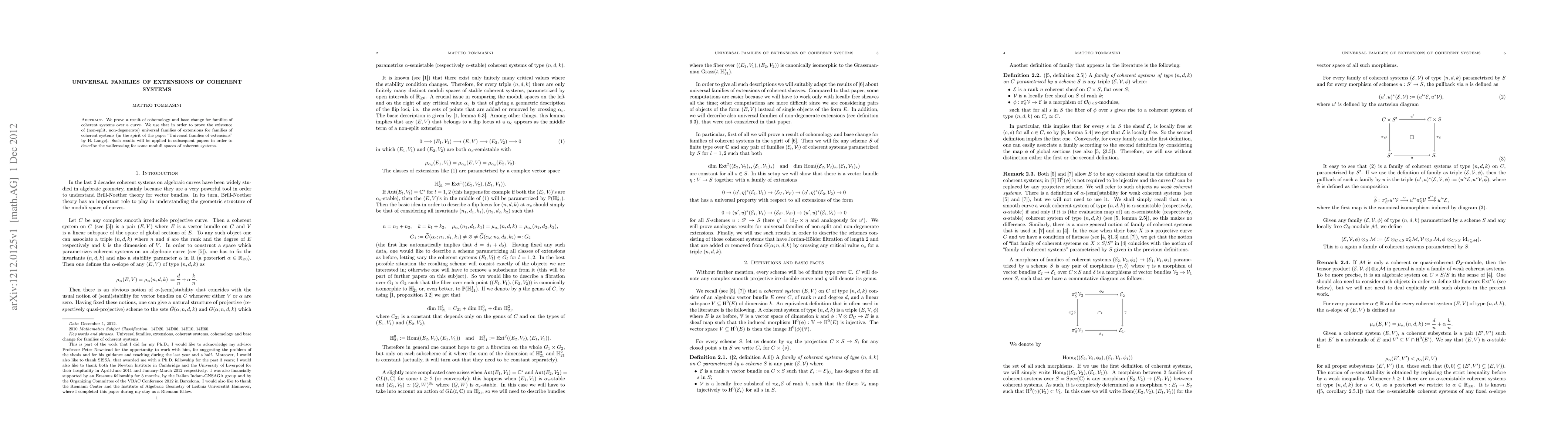 This paper proves a cohomology and base change result for families of coherent systems over a curve, leading to the existence of universal families of extensions for these systems, which will aid in describing wallcrossing phenomena in related moduli spaces.