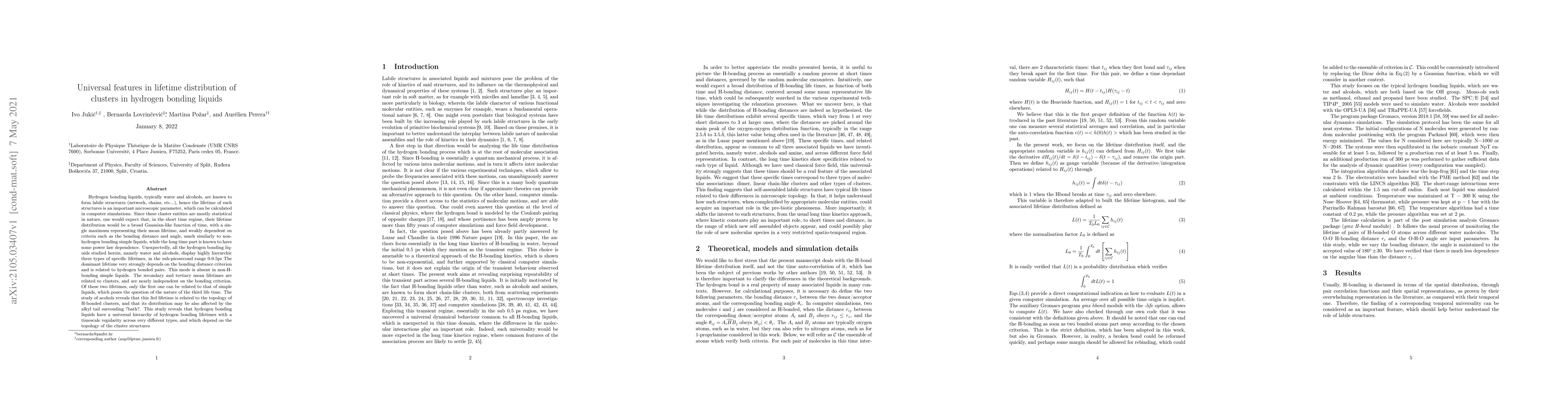 This research reveals that hydrogen bonding liquids like water and alcohols exhibit a universal hierarchy of cluster lifetimes, characterized by three distinct types: a dominant lifetime dependent on hydrogen bond distance, and secondary and tertiary lifetimes related to cluster topology and surrounding alkyl tails, respectively. This hierarchical structure contrasts with non-hydrogen bonding liquids, highlighting unique temporal dynamics in hydrogen bonding networks.