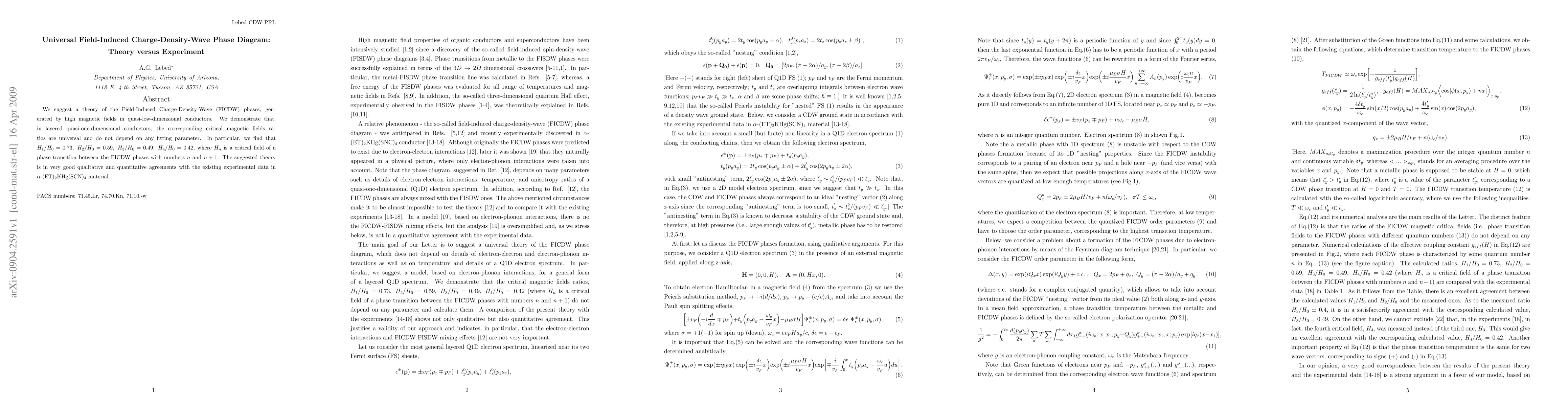 Researchers propose a universal theory for charge-density-wave phases in layered quasi-one-dimensional conductors under high magnetic fields, predicting consistent critical field ratios across materials.