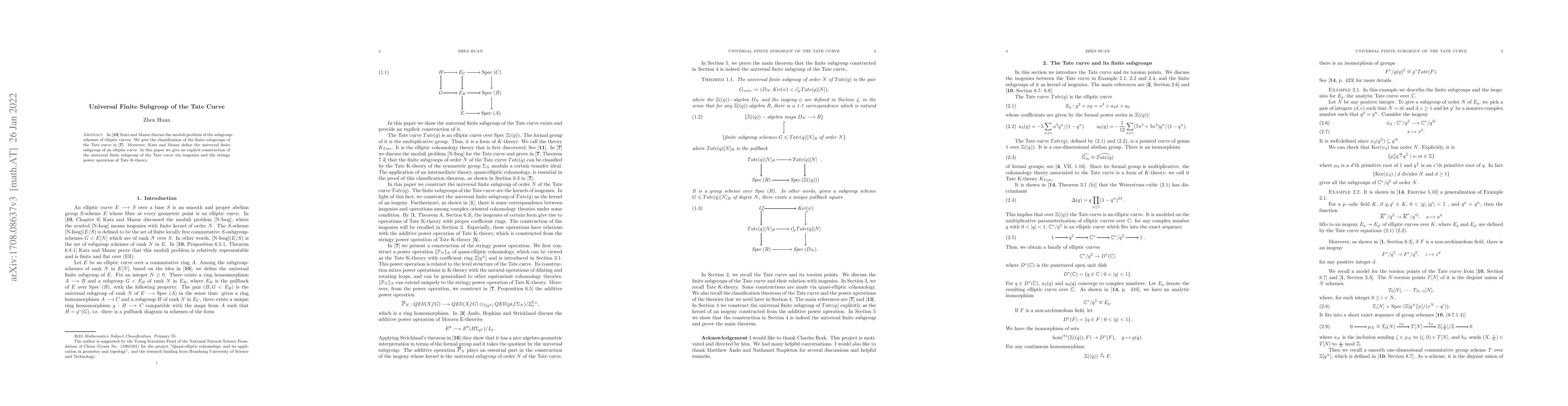 In their book Katz and Mazur discuss the moduli problem of the subgroup-schemes of elliptic curves. We give the classification of the finite subgroups of the Tate curve before. Moreover, Katz and Mazur define the universal finite subgroup of an elliptic curve. In this paper we give an explicit construction of the universal finite subgroup of the Tate curve via isogenies and the stringy power operation of Tate K-theory.