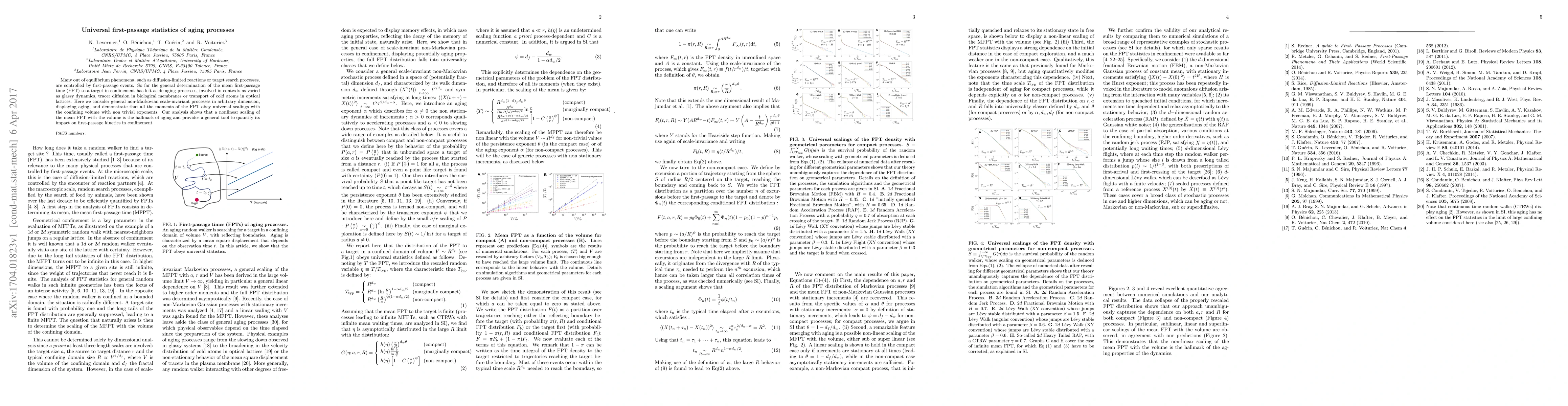 This paper explores the universal first-passage statistics of aging processes, demonstrating that moments of the mean first-passage time (FPT) exhibit universal scaling laws with confining volume. It reveals a nonlinear scaling of the mean FPT as a key indicator of aging, providing a general method to quantify its effects on first-passage kinetics.