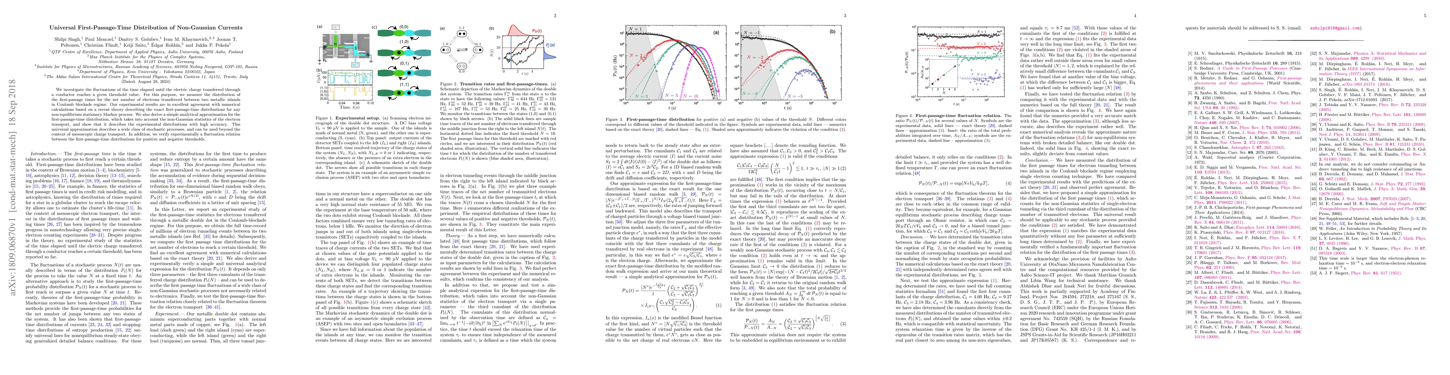 This paper investigates the first-passage-time distribution for non-Gaussian currents in a conductor, focusing on the time until a threshold charge is reached. Experimental results align with theoretical models and numerical simulations, providing a universal analytical approximation for non-Gaussian statistics in electron transport.