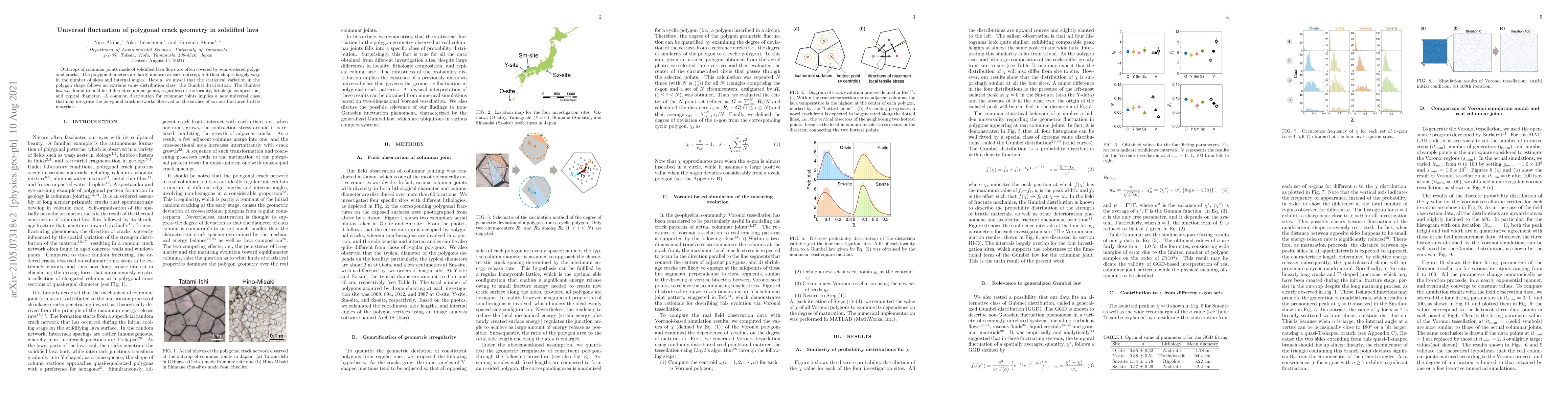 The study reveals that the statistical variation in polygonal crack shapes in solidified lava follows a Gumbel distribution, indicating a universal pattern across different columnar joints regardless of locality or composition. This finding suggests a common distribution class for polygonal crack networks in various fractured brittle materials.