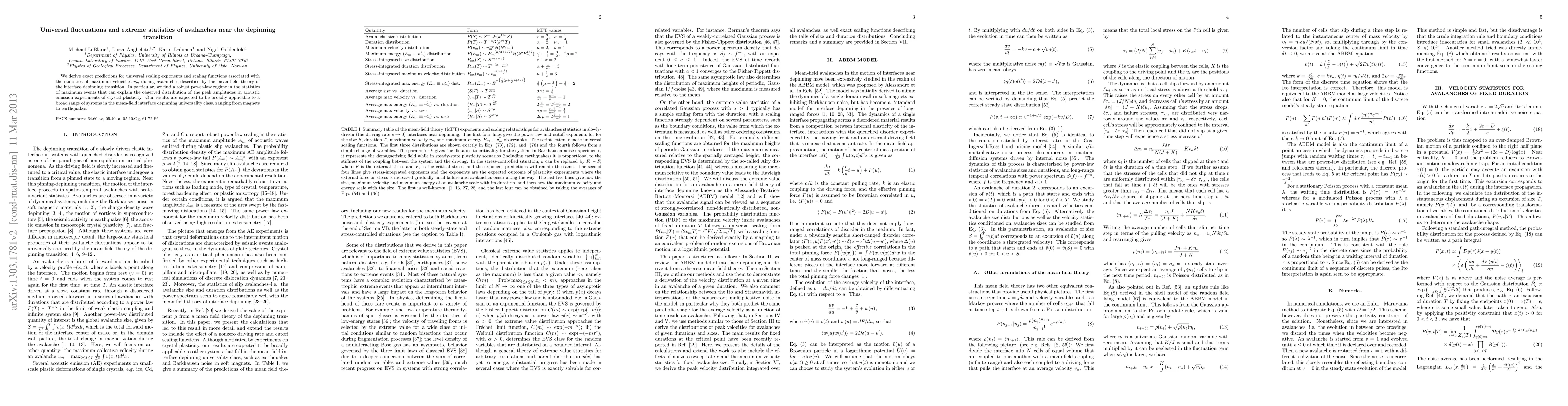 This paper derives exact predictions for universal scaling exponents and functions related to the statistics of maximum velocities during avalanches near the depinning transition, revealing a robust power-law regime that explains observed peak amplitude distributions in acoustic emission experiments. These findings are applicable to a wide range of systems within the mean-field interface depinning universality class.