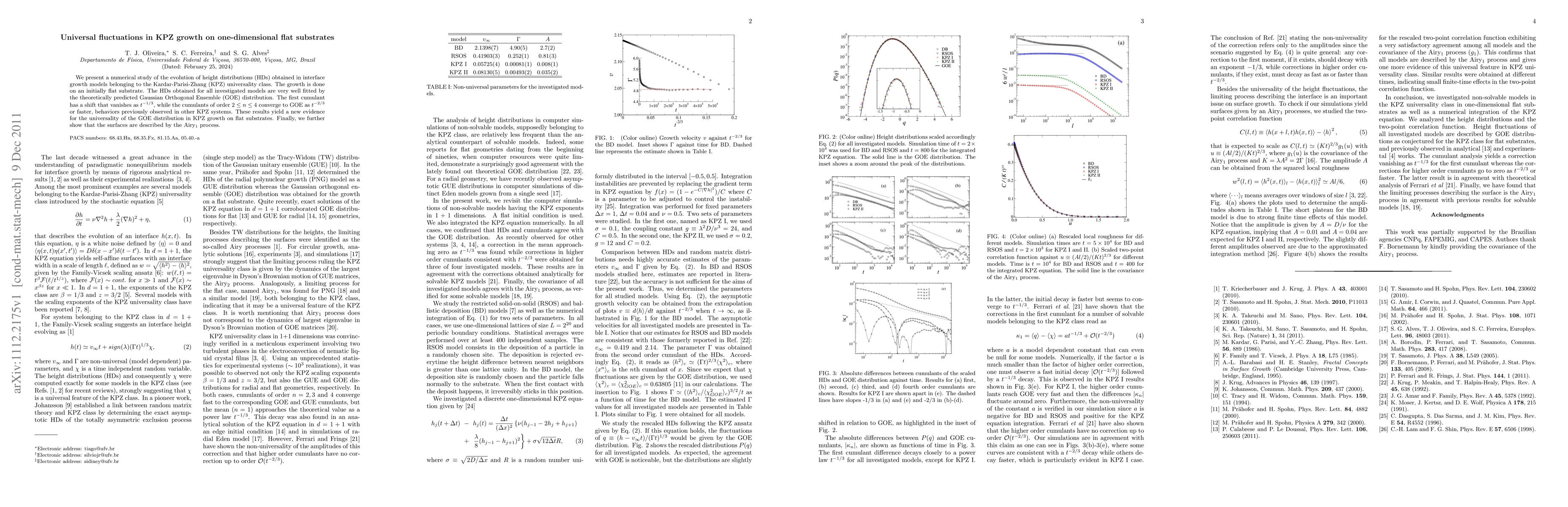 This study numerically investigates the height distributions in one-dimensional KPZ growth models on flat substrates, finding they fit the Gaussian Orthogonal Ensemble distribution. The results support the universality of the GOE distribution and show that the growth surfaces follow the Airy$_{1}$ process.