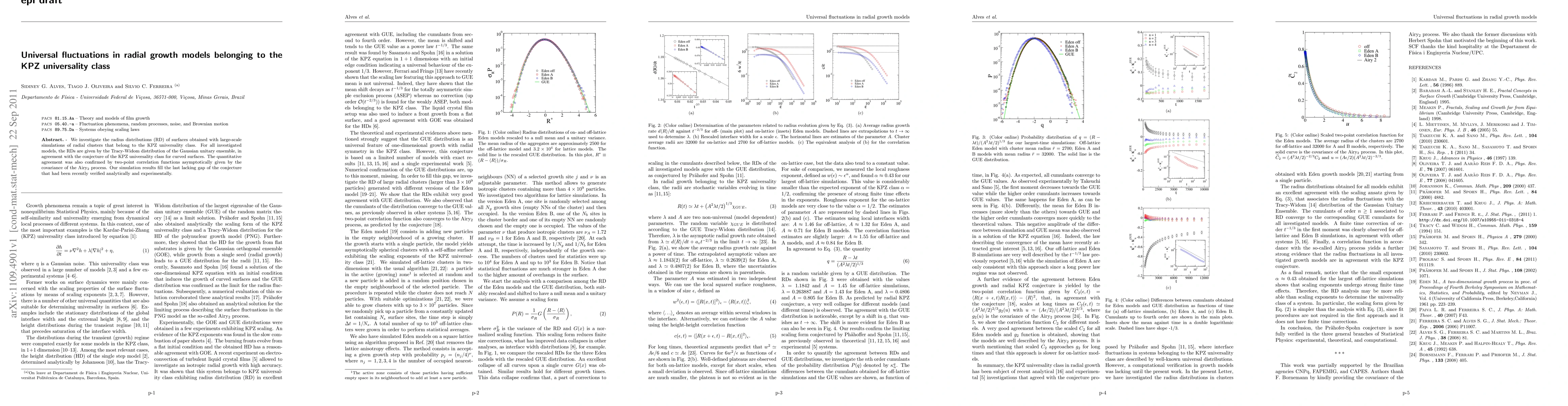 We investigate the radius distributions (RD) of surfaces obtained with large-scale simulations of radial clusters that belong to the KPZ universality class. For all investigated models, the RDs are given by the Tracy-Widom distribution of the Gaussian unitary ensemble, in agreement with the conjecture of the KPZ universality class for curved surfaces. The quantitative agreement was also confirmed by two-point correlation functions asymptotically given by the covariance of the Airy$_2$ process. Our simulation results fill the last lacking gap of the conjecture that had been recently verified analytically and experimentally.