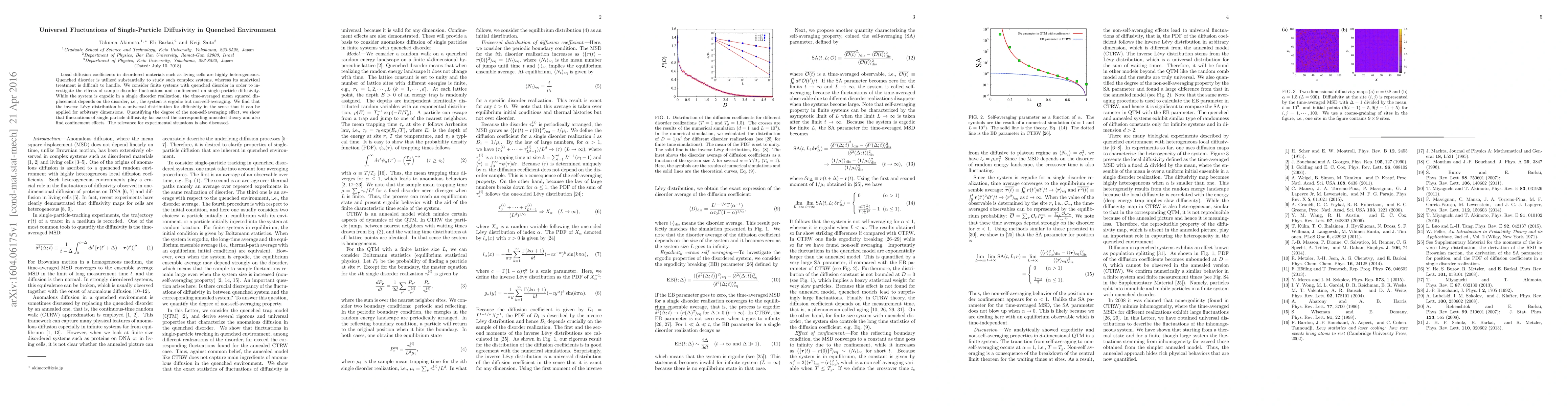 Research investigates how single-particle diffusivity varies in disordered materials with quenched disorder, finding a universal distribution for diffusivity that applies to arbitrary dimensions. The study reveals large fluctuations of single-particle diffusivity exceeding previous theories and shows confinement effects.
