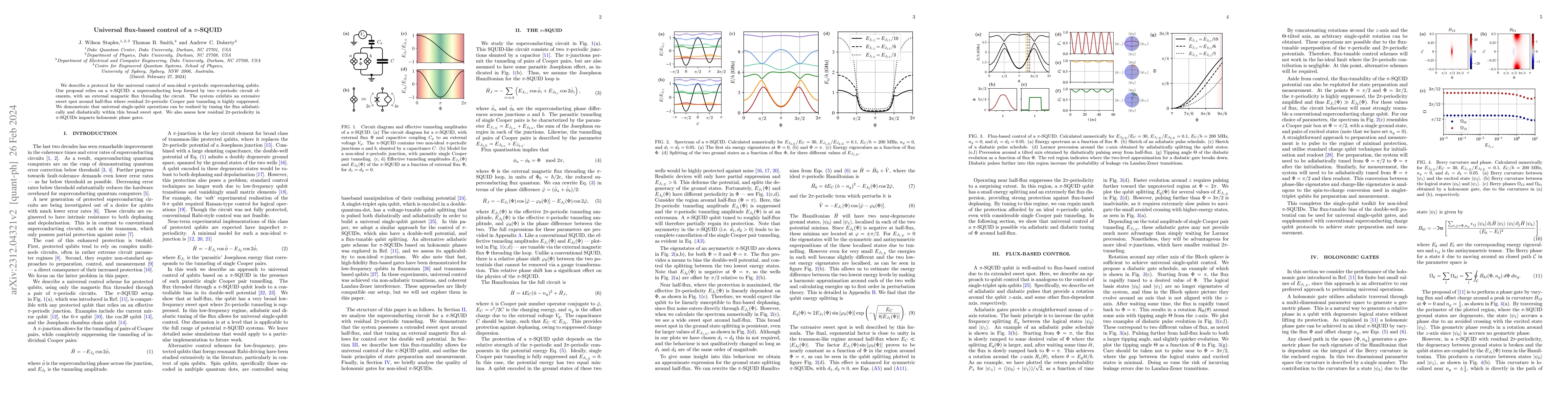This paper proposes a method for universal control of non-ideal $\pi$-periodic superconducting qubits using a $\pi$-SQUID, which suppresses residual $2\pi$-periodic Cooper pair tunneling around half-flux. The authors demonstrate that adiabatic and diabatic flux tuning within this "sweet spot" enables universal single-qubit operations and assess the impact of residual $2\pi$-periodicity on holonomic phase gates.