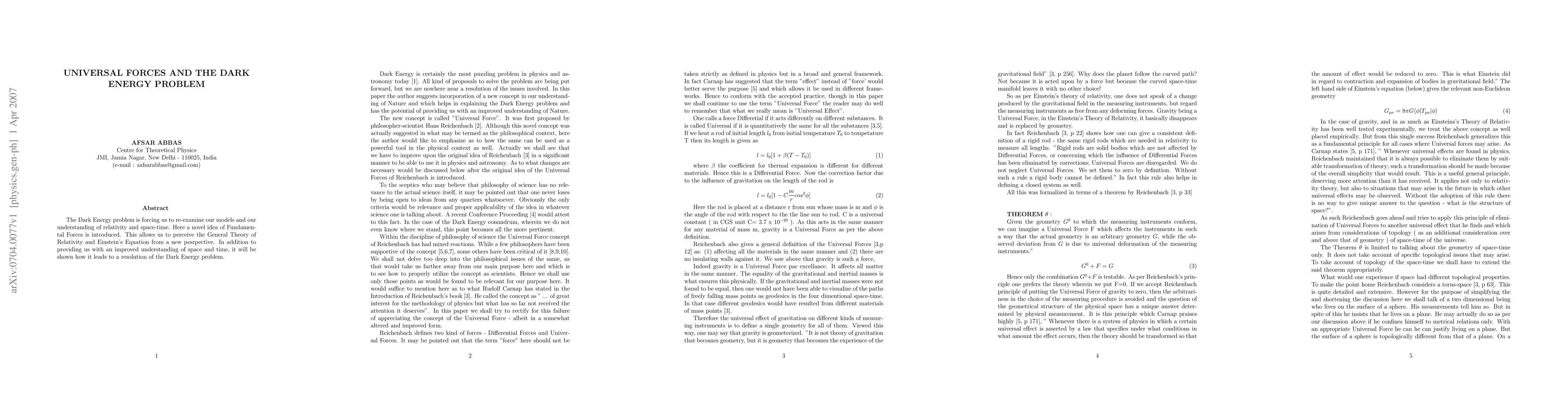 Researchers propose a new concept of Fundamental Forces to resolve the Dark Energy problem, offering an improved understanding of space-time and potentially re-evaluating Einstein's Theory of Relativity.