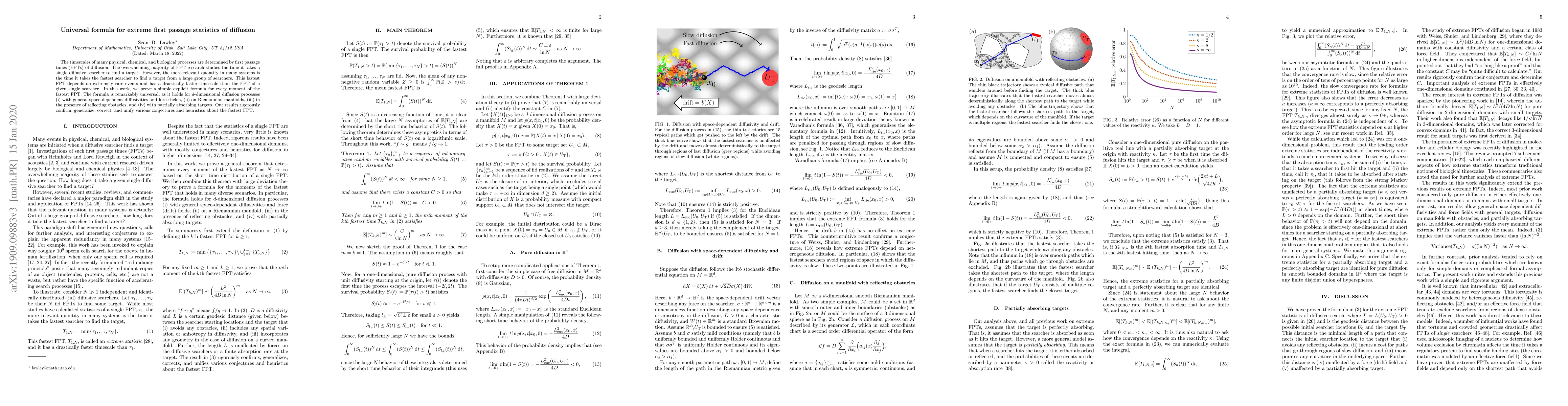 The paper presents a rigorous proof of a universal formula for the moments of the fastest FPT in diffusion processes, applicable across diverse scenarios including general diffusivities, force fields, manifolds, obstacles, and partially absorbing targets.