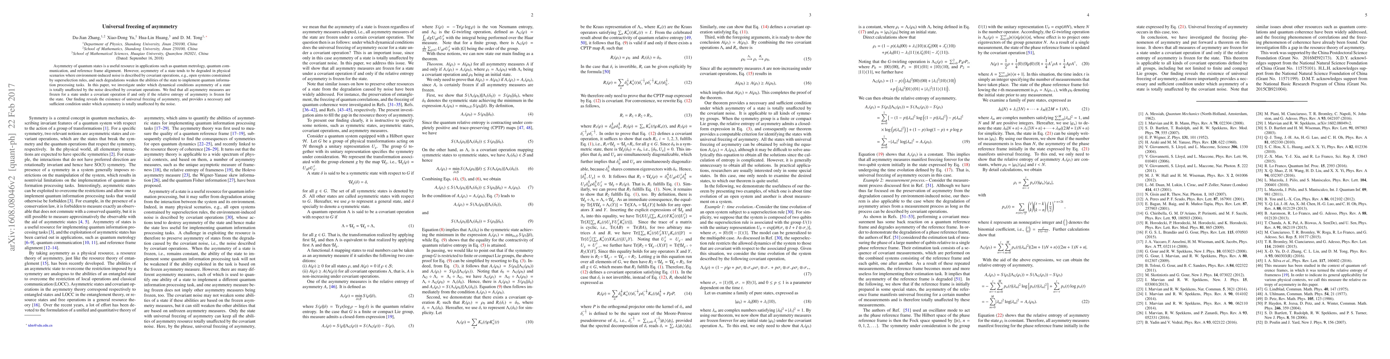 Research finds that asymmetry of quantum states is frozen under certain conditions when noise from open systems is considered, providing a necessary condition for preserving this resource.