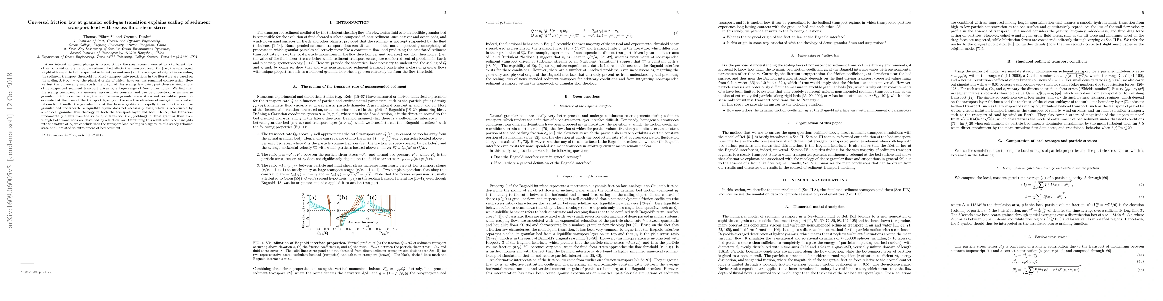 This research reveals that the scaling of sediment transport load with excess fluid shear stress follows a universal friction law at the granular solid-gas transition, where the scaling coefficient is an inverse granular friction coefficient. This transition differs from solid-liquid yielding, indicating that the transport load scaling reflects a steady rebound state rather than sediment entrainment.