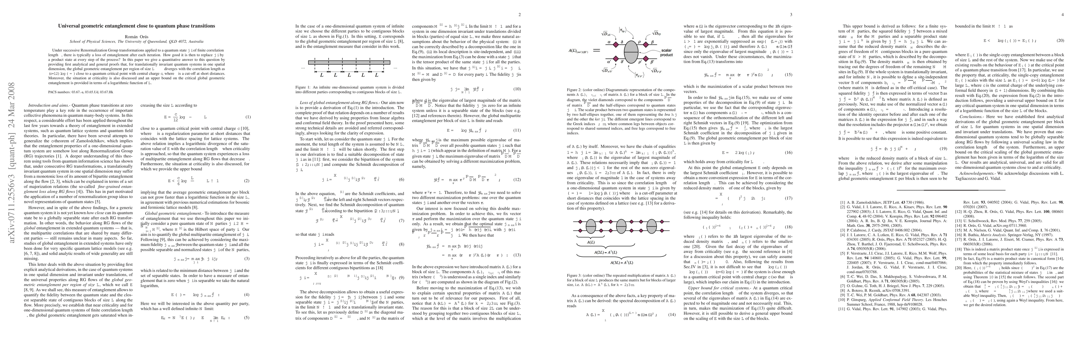Under successive Renormalization Group transformations applied to a quantum state $\ket{\Psi}$ of finite correlation length $\xi$, there is typically a loss of entanglement after each iteration. How good it is then to replace $\ket{\Psi}$ by a product state at every step of the process? In this paper we give a quantitative answer to this question by providing first analytical and general proofs that, for translationally invariant quantum systems in one spatial dimension, the global geometric entanglement per region of size $L \gg \xi$ diverges with the correlation length as $(c/12) \log{(\xi/\epsilon)}$ close to a quantum critical point with central charge $c$, where $\epsilon$ is a cut-off at short distances. Moreover, the situation at criticality is also discussed and an upper bound on the critical global geometric entanglement is provided in terms of a logarithmic function of $L$.