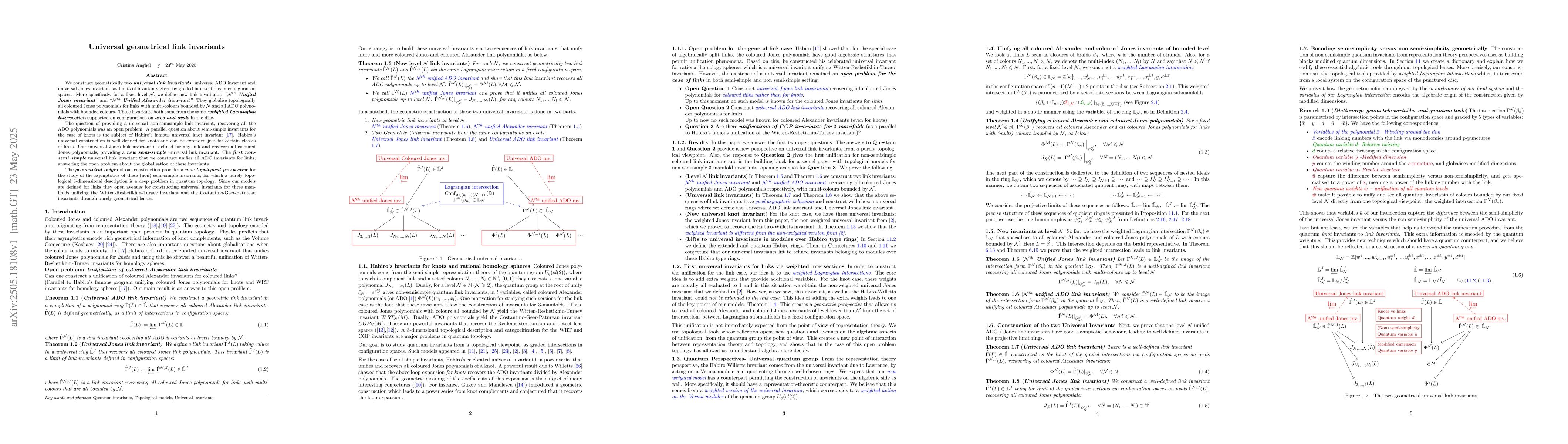 The research constructs geometrically two universal link invariants - the universal ADO invariant and the universal Jones invariant - as limits of invariants given by graded intersections in configuration spaces.