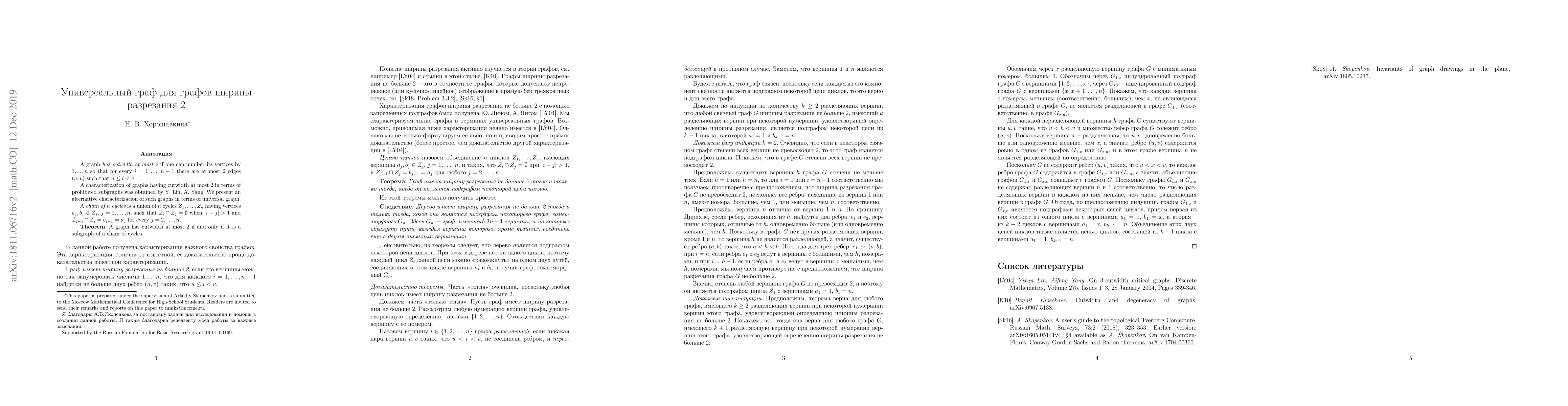 A graph {\it has cutwidth at most 2} if one can number its vertices by