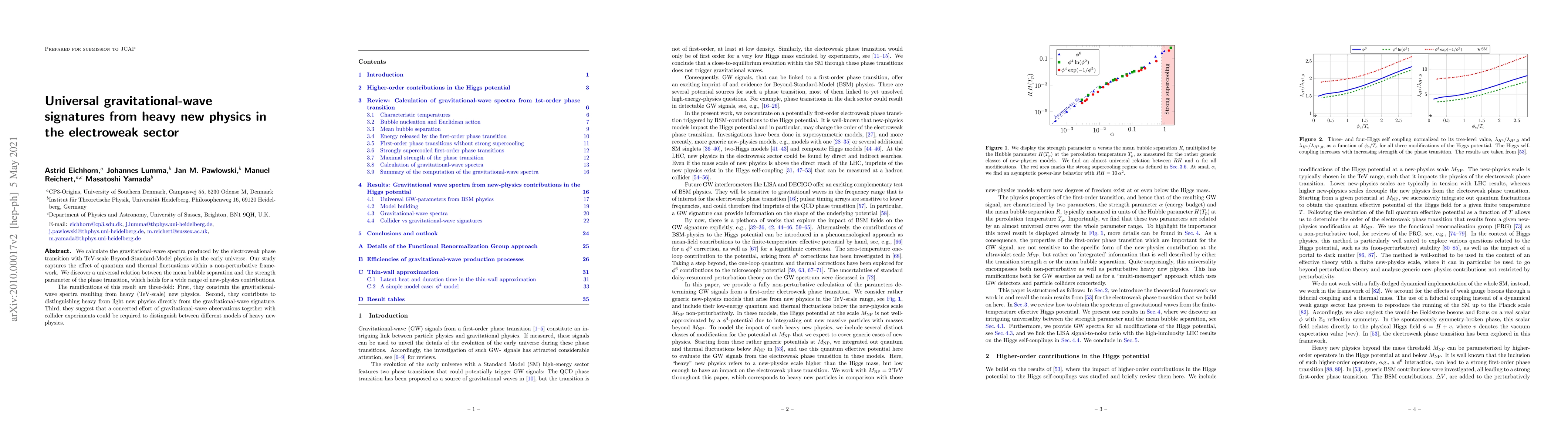 We calculate the gravitational-wave spectra produced by the electroweak phase transition with TeV-scale Beyond-Standard-Model physics in the early universe. Our study captures the effect of quantum and thermal fluctuations within a non-perturbative framework. We discover a universal relation between the mean bubble separation and the strength parameter of the phase transition, which holds for a wide range of new-physics contributions. The ramifications of this result are three-fold: First, they constrain the gravitational-wave spectra resulting from heavy (TeV-scale) new physics. Second, they contribute to distinguishing heavy from light new physics directly from the gravitational-wave signature. Third, they suggest that a concerted effort of gravitational-wave observations together with collider experiments could be required to distinguish between different models of heavy new physics.