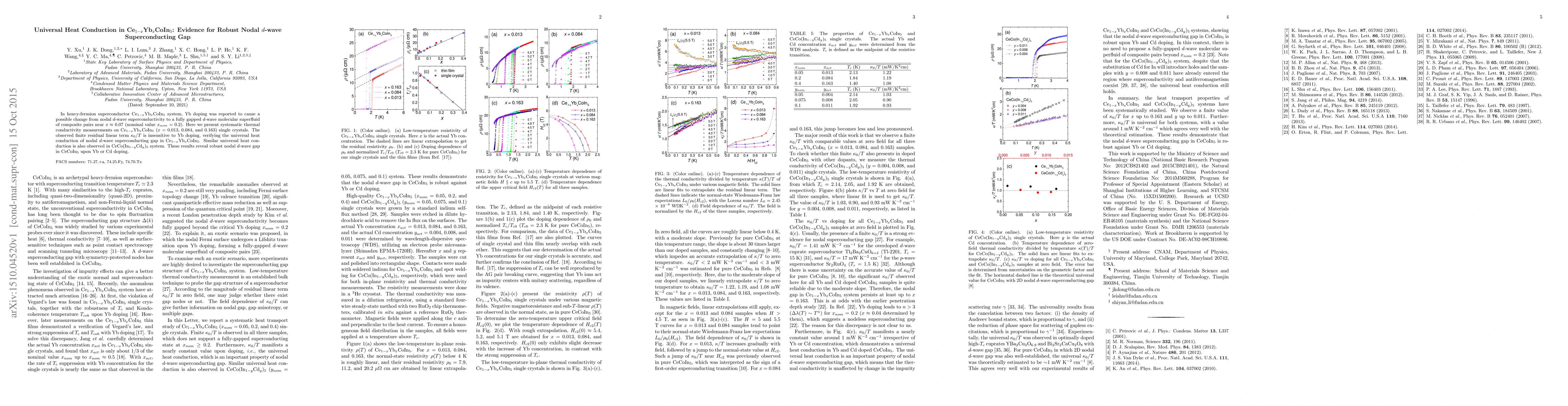 This paper reports that Yb doping in Ce$_{1-x}$Yb$_x$CoIn$_5$ does not alter the universal heat conduction, confirming the presence of a robust nodal $d$-wave superconducting gap. This finding supports the idea that the superconducting state remains stable despite doping.