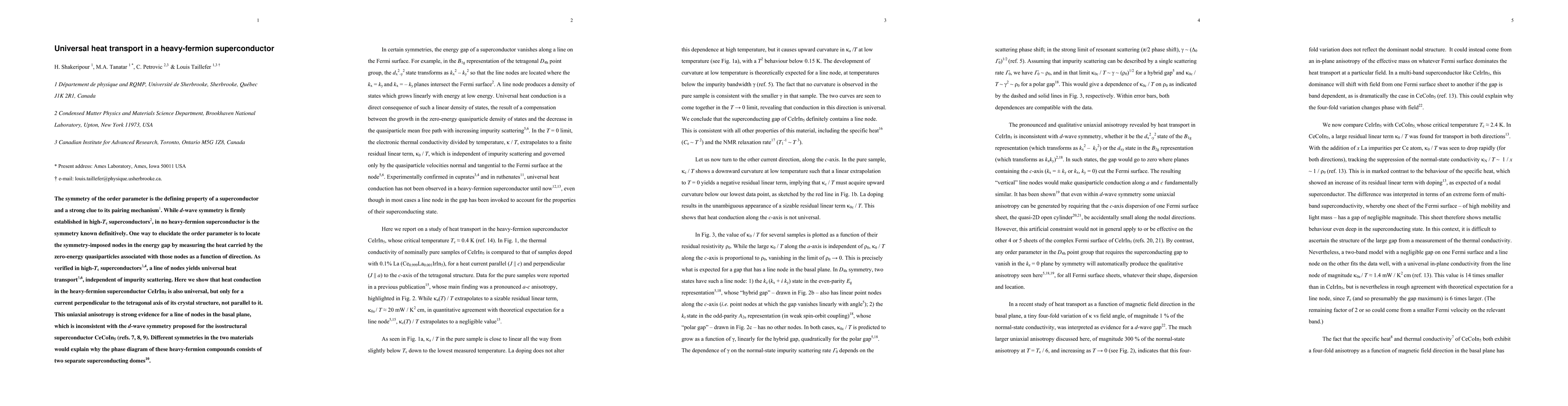 The symmetry of the order parameter is the defining property of a superconductor and a strong clue to its pairing mechanism. While d-wave symmetry is firmly established in high-Tc superconductors, in no heavy-fermion superconductor is the symmetry known definitively. One way to elucidate the order parameter is to locate the symmetry-imposed nodes in the energy gap by measuring the heat carried by the zero-energy quasiparticles associated with those nodes as a function of direction. As verified in high-Tc superconductors a line of nodes yields universal heat transport independent of impurity scattering. Here we show that heat conduction in the heavy-fermion superconductor CeIrIn5 is also universal, but only for a current perpendicular to the tetragonal axis of its crystal structure, not parallel to it. This uniaxial anisotropy is strong evidence for a line of nodes in the basal plane, which is inconsistent with the d-wave symmetry proposed for the isostructural superconductor CeCoIn5. Different symmetries in the two materials would explain why the phase diagram of these heavy-fermion compounds consists of two separate superconducting domes.