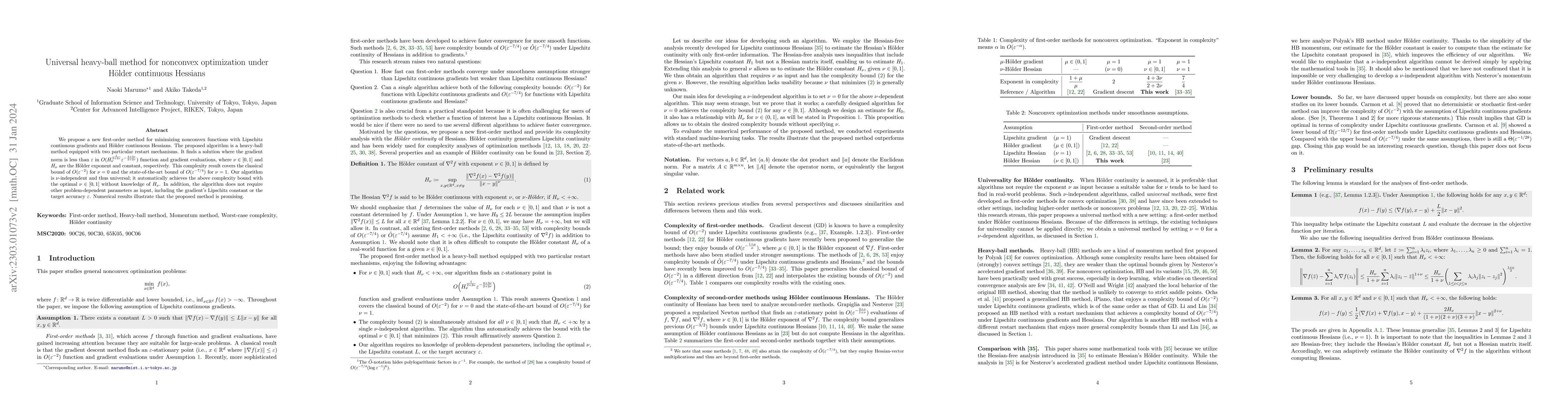 This paper introduces a universal heavy-ball optimization method for minimizing nonconvex functions with Lipschitz continuous gradients and H\"older continuous Hessians. The proposed algorithm automatically achieves optimal convergence rates without requiring problem-specific parameters, and numerical results indicate its effectiveness.