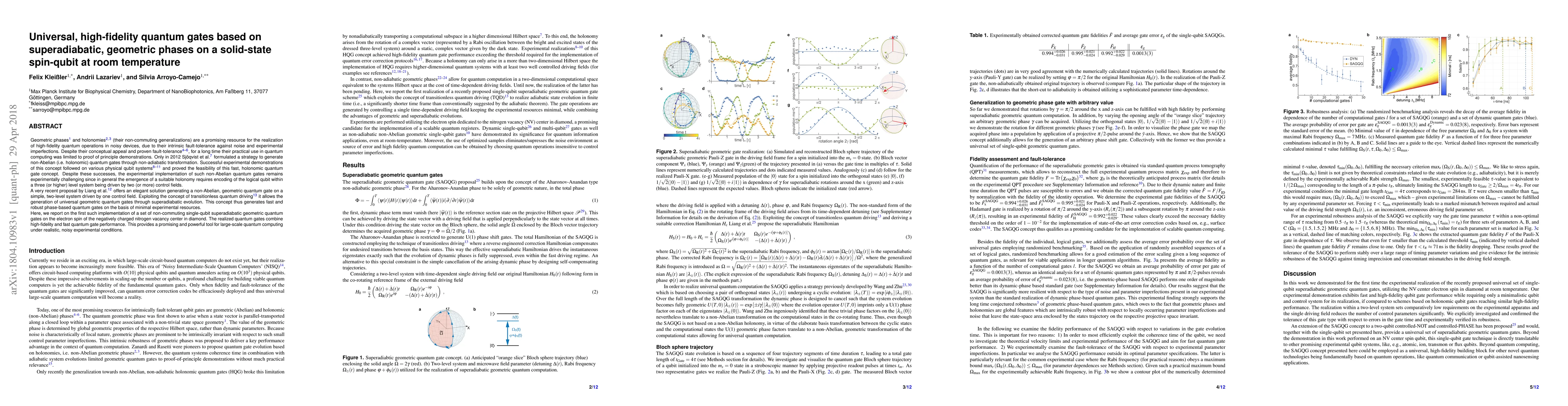 This paper reports the first implementation of high-fidelity, fast, non-commuting single-qubit superadiabatic geometric quantum gates on electron spins in nitrogen vacancy centers in diamond, leveraging minimal experimental resources. This development offers a promising approach for quantum computing in noisy environments.