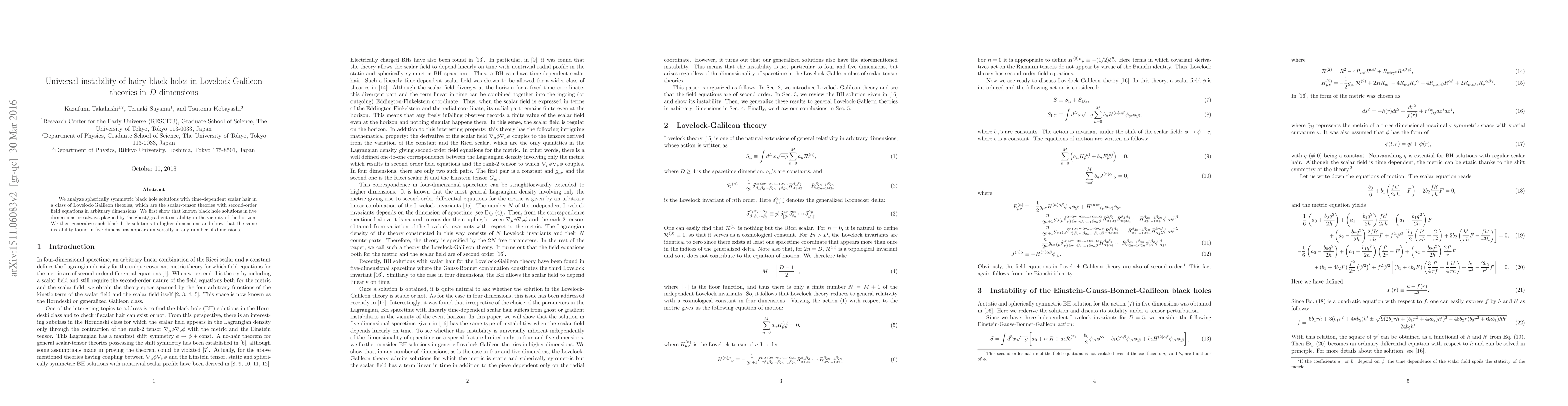 We analyze spherically symmetric black hole solutions with time-dependent scalar hair in a class of Lovelock-Galileon theories, which are the scalar-tensor theories with second-order field equations in arbitrary dimensions. We first show that known black hole solutions in five dimensions are always plagued by the ghost/gradient instability in the vicinity of the horizon. We then generalize such black hole solutions to higher dimensions and show that the same instability found in five dimensions appears universally in any number of dimensions.