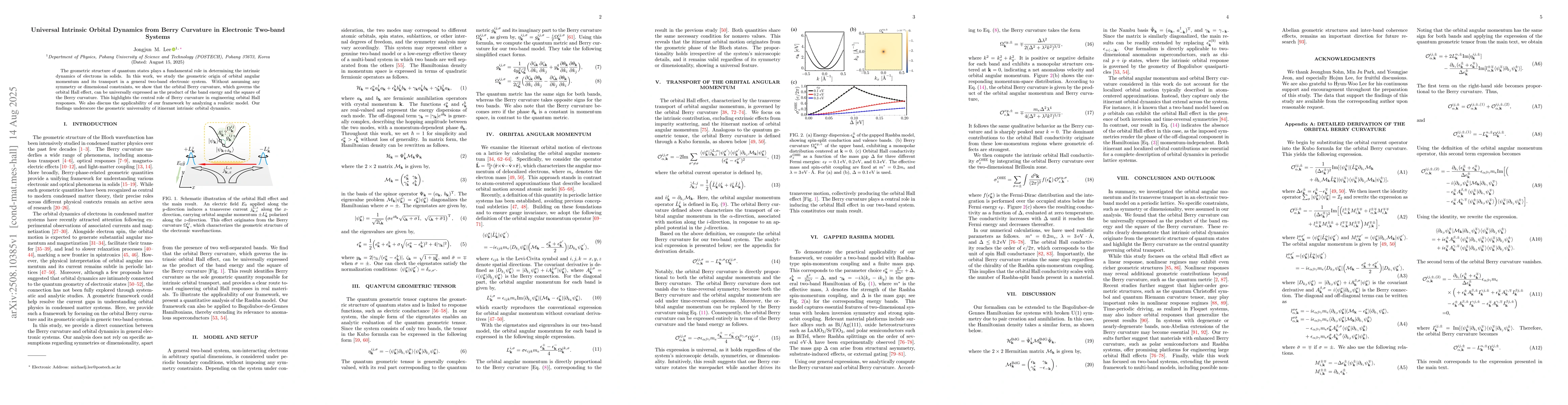 The research investigates the geometric origin of orbital angular momentum and its transport in a general two-band electronic system, using the Berry curvature without assuming any symmetry or dimensional constraints.