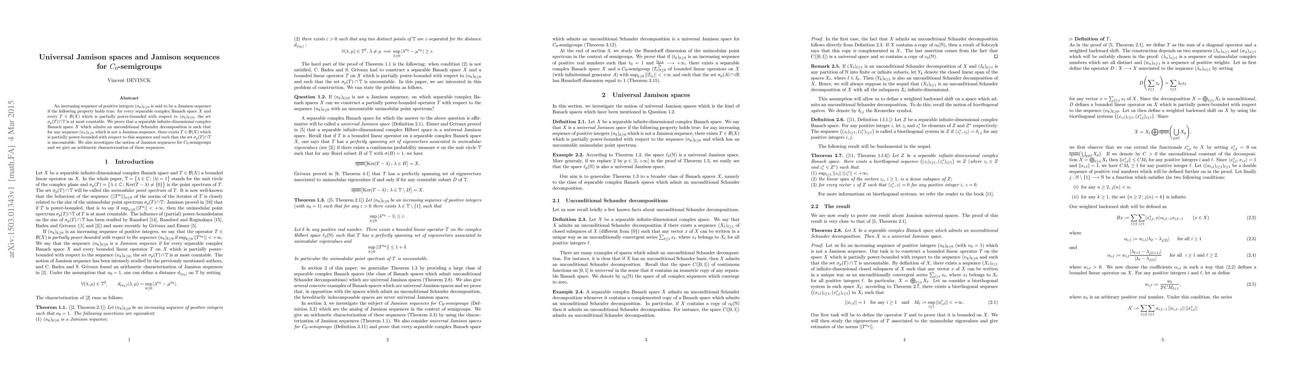 An increasing sequence of positive integers $(n_k)_{k\ge 0}$ is said to be a Jamison sequence if the following property holds true: for every separable complex Banach space $X$ and every $T\in \mathcal{B}(X)$ which is partially power-bounded with respect to $(n_k)_{k\ge 0}$, the set $\sigma_p(T)\cap \T$ is at most countable. We prove that a separable infinite-dimensional complex Banach space $X$ which admits an unconditional Schauder decomposition is such that for any sequence $(n_k)_{k\ge 0}$ which is not a Jamison sequence, there exists $T\in \mathcal{B}(X)$ which is partially power-bounded with respect to this sequence and such that the set $\sigma_p(T)\cap \T$ is uncountable. We also investigate the notion of Jamison sequences for $C_0$-semigroups and we give an arithmetic characterization of these sequences.