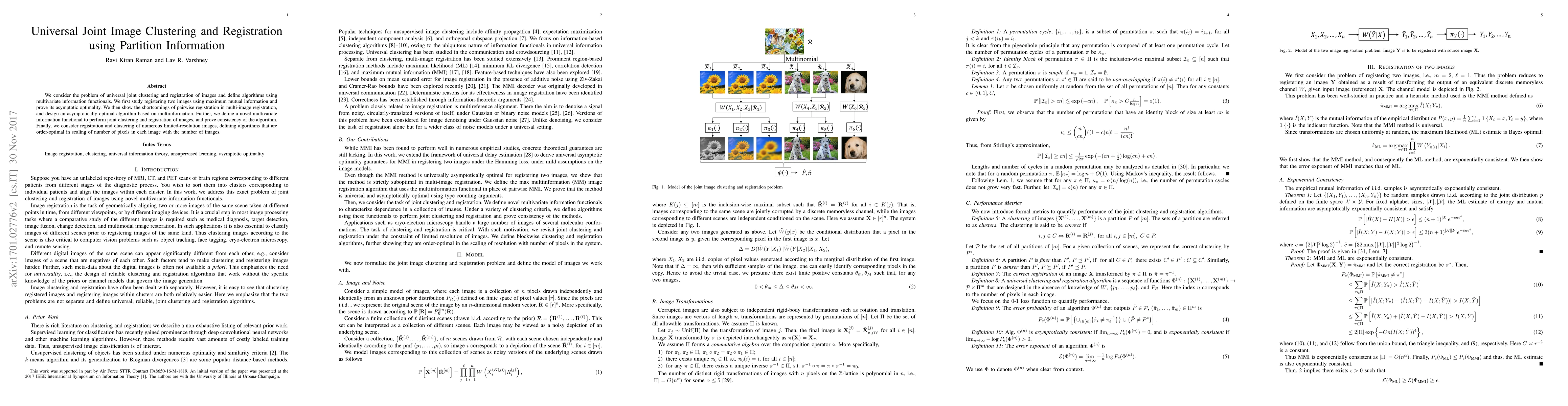 This paper proposes algorithms for universal joint clustering and registration of images using multivariate information functionals. It demonstrates the asymptotic optimality of maximum mutual information for pairwise registration and introduces a novel multiinformation-based approach for multi-image registration, proving its consistency and scalability.