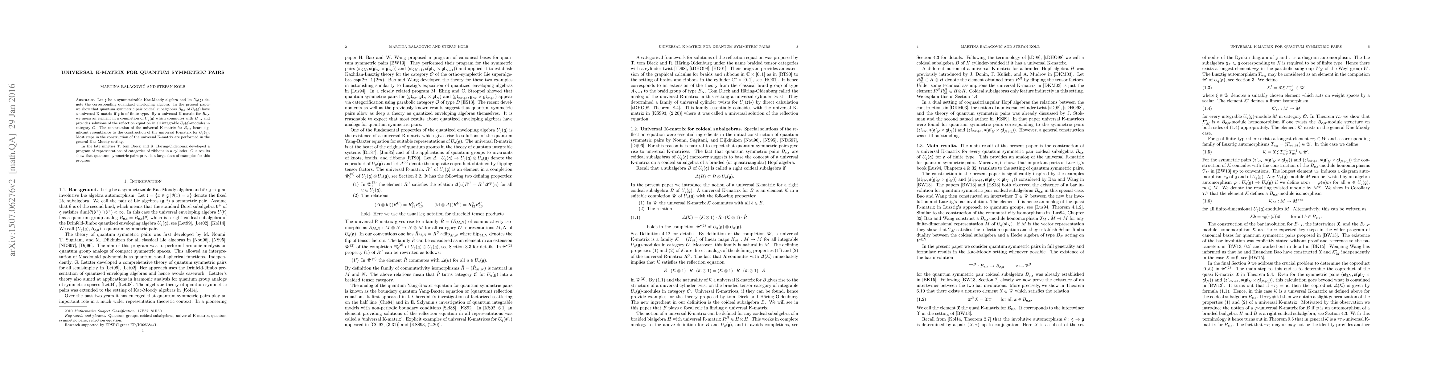 Let $\mathfrak{g}$ be a symmetrizable Kac-Moody algebra and let $U_q(\mathfrak{g})$ denote the corresponding quantized enveloping algebra. In the present paper we show that quantum symmetric pair coideal subalgebras $B_{c,s}$ of $U_q(\mathfrak{g})$ have a universal K-matrix if $\mathfrak{g}$ is of finite type. By a universal K-matrix for $B_{c,s}$ we mean an element in a completion of $U_q(\mathfrak{g})$ which commutes with $B_{c,s}$ and provides solutions of the reflection equation in all integrable $U_q(\mathfrak{g})$-modules in category $\mathcal{O}$. The construction of the universal K-matrix for $B_{c,s}$ bears significant resemblance to the construction of the universal R-matrix for $U_q(\mathfrak{g})$. Most steps in the construction of the universal K-matrix are performed in the general Kac-Moody setting. In the late nineties T. tom Dieck and R. H\"aring-Oldenburg developed a program of representations of categories of ribbons in a cylinder. Our results show that quantum symmetric pairs provide a large class of examples for this program.