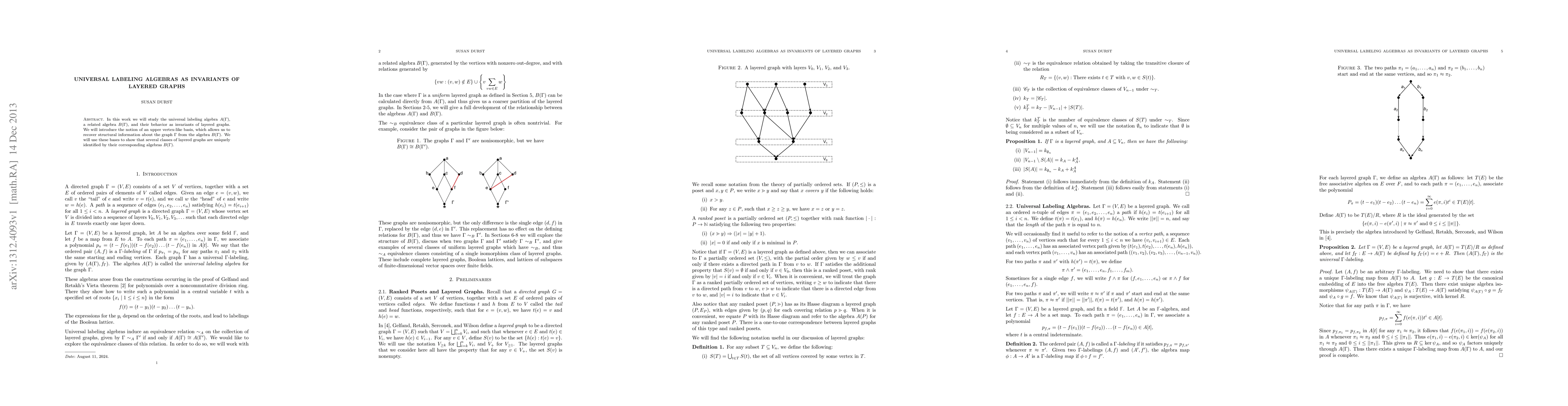 This paper investigates universal labeling algebras A(Gamma) and B(Gamma) as invariants of layered graphs, introducing an upper vertex-like basis to recover structural information. It demonstrates that specific classes of layered graphs are uniquely identified by their corresponding algebra B(Gamma).