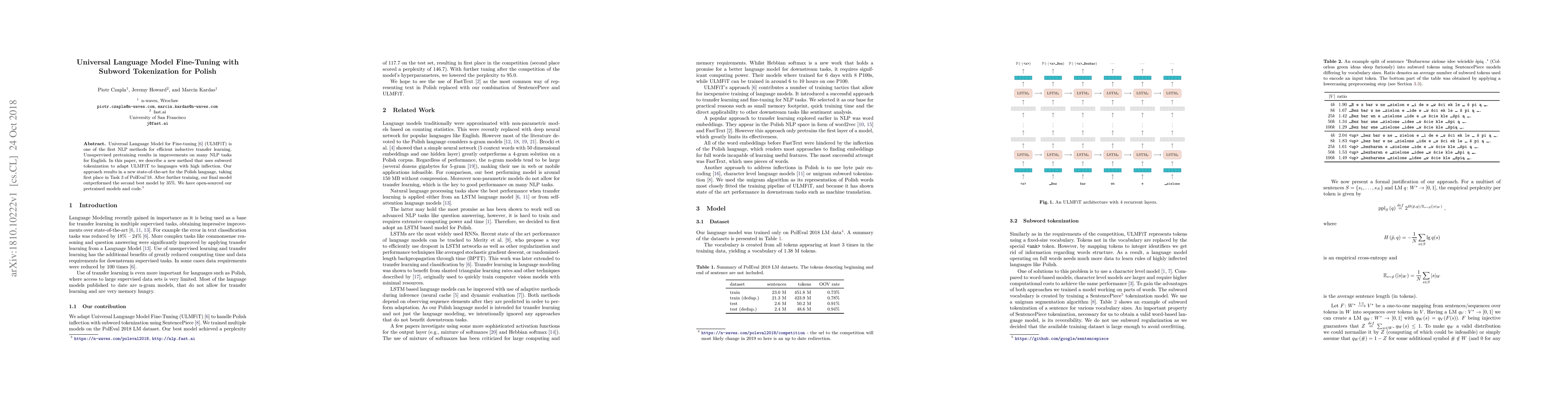 Universal Language Model for Fine-tuning [arXiv:1801.06146] (ULMFiT) is one of the first NLP methods for efficient inductive transfer learning. Unsupervised pretraining results in improvements on many NLP tasks for English. In this paper, we describe a new method that uses subword tokenization to adapt ULMFiT to languages with high inflection. Our approach results in a new state-of-the-art for the Polish language, taking first place in Task 3 of PolEval'18. After further training, our final model outperformed the second best model by 35%. We have open-sourced our pretrained models and code.