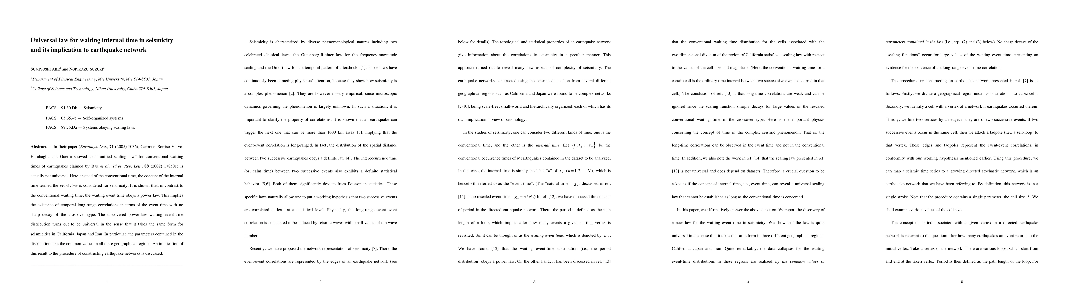 This paper reveals that the waiting event time in seismicity follows a universal power-law distribution, contrasting with the non-universal scaling of conventional waiting times. This discovery implies temporal long-range correlations and has implications for constructing earthquake networks across different geographical regions.