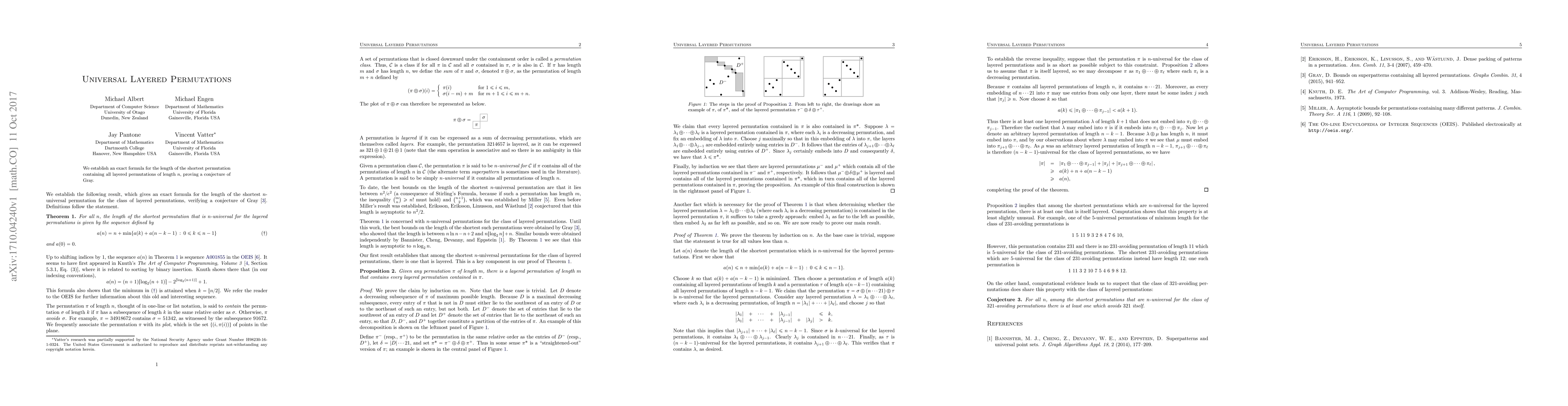 Summary: The paper provides an exact formula for the length of the shortest permutation that includes all layered permutations of length $n$, thereby confirming Gray's conjecture. This result advances the understanding of permutation structures.