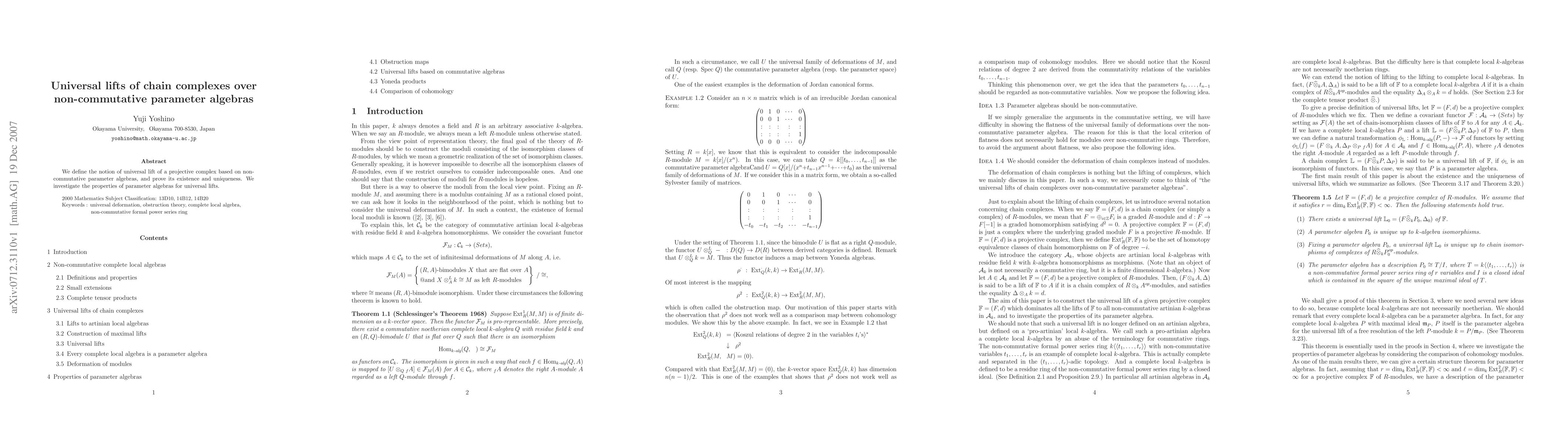 We define the notion of universal lift of a projective complex based on non-commutative parameter algebras, and prove its existence and uniqueness. We investigate the properties of parameter algebras for universal lifts.