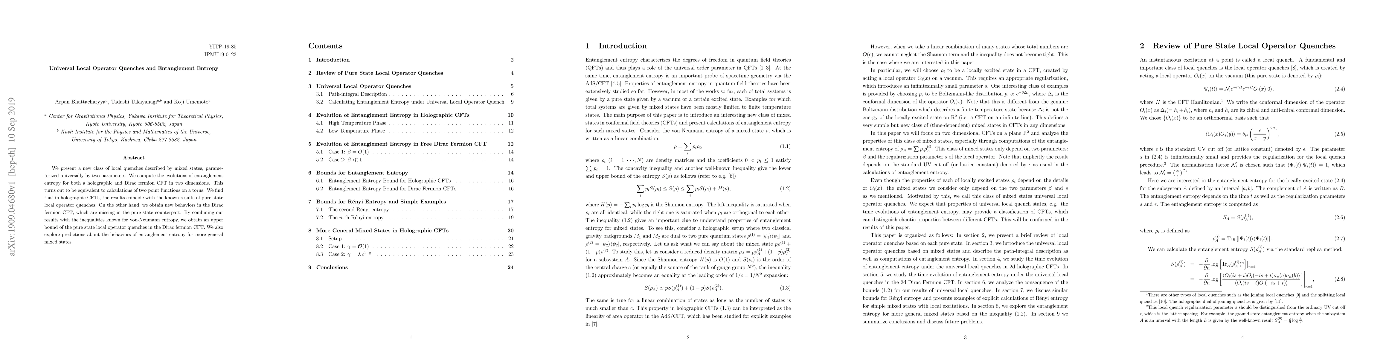 We present a new class of local quenches described by mixed states, parameterized universally by two parameters. We compute the evolutions of entanglement entropy for both a holographic and Dirac fermion CFT in two dimensions. This turns out to be equivalent to calculations of two point functions on a torus. We find that in holographic CFTs, the results coincide with the known results of pure state local operator quenches. On the other hand, we obtain new behaviors in the Dirac fermion CFT, which are missing in the pure state counterpart. By combining our results with the inequalities known for von-Neumann entropy, we obtain an upper bound of the pure state local operator quenches in the Dirac fermion CFT. We also explore predictions about the behaviors of entanglement entropy for more general mixed states.
