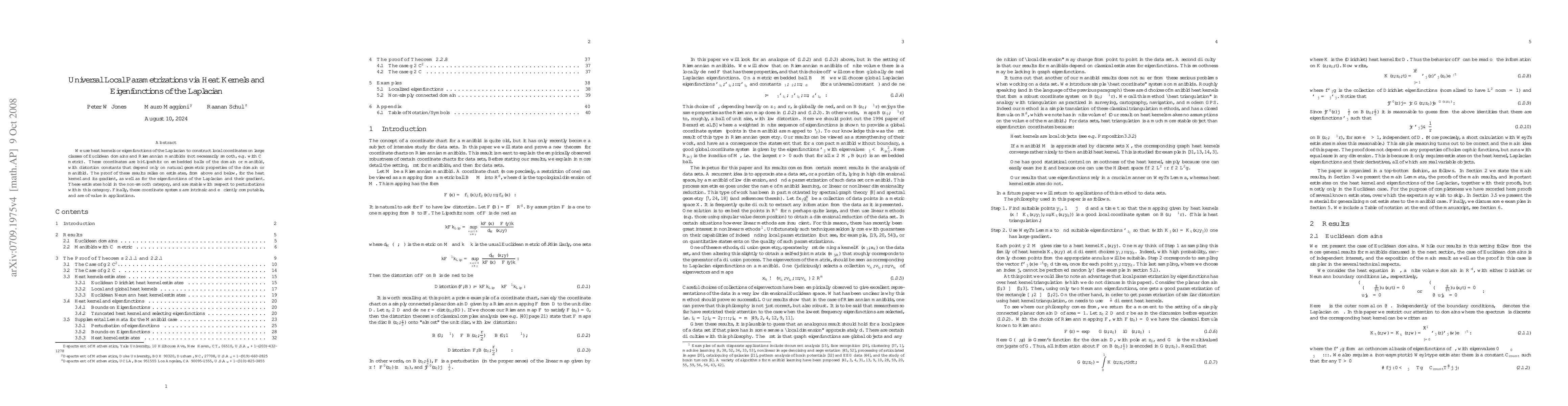 Researchers developed a method to create local coordinates on large domains and manifolds using heat kernels and eigenfunctions of the Laplacian, providing bi-Lipschitz transformations with distortion constants dependent on domain properties.