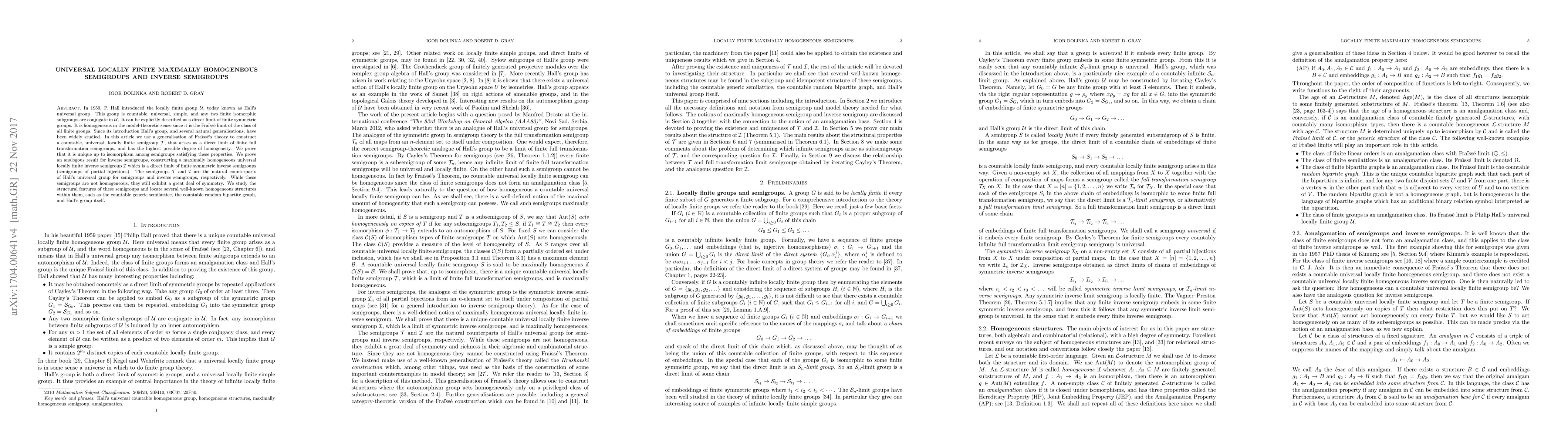 This paper constructs a countable, universal, locally finite semigroup $\mathcal{T}$ and an inverse semigroup $\mathcal{I}$, both maximally homogeneous and arising as direct limits of finite transformation and symmetric inverse semigroups, respectively. These structures generalize Hall's universal group and exhibit significant symmetry, embedding well-known homogeneous structures.