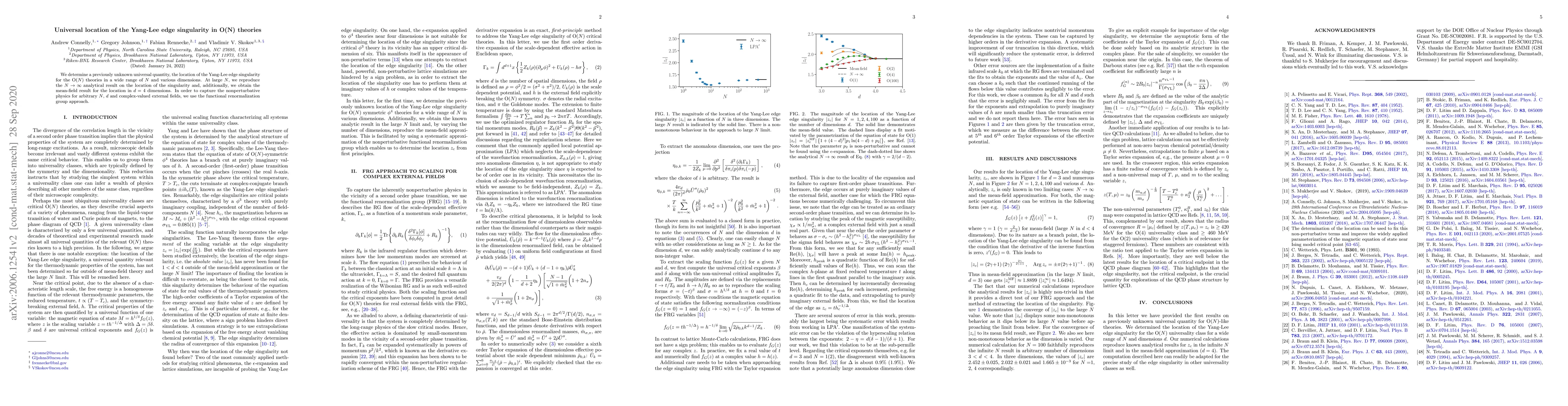 This paper identifies a universal quantity—the location of the Yang-Lee edge singularity—in O(N) theories across various dimensions and N values. It employs the functional renormalization group approach to capture nonperturbative physics, reproducing analytical results for large N and providing the mean-field result for four dimensions.