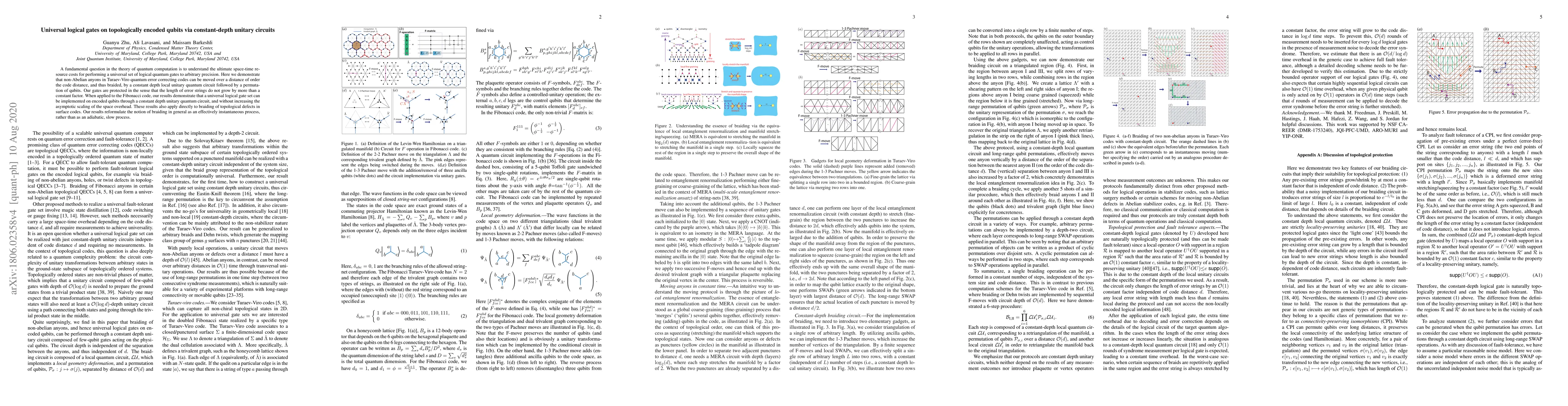 This paper demonstrates that universal logical gates can be implemented on topologically encoded qubits using constant-depth unitary circuits, ensuring error protection and no increase in space overhead. This approach reformulates braiding as an effectively instantaneous process, rather than a slow, adiabatic one.