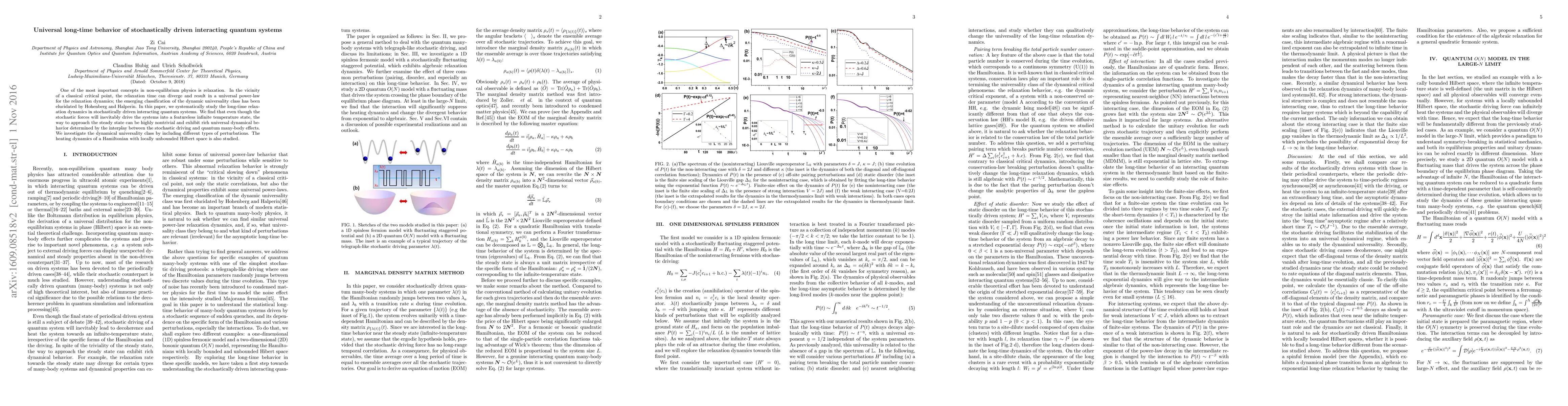 Researchers studied long-time behavior in stochastically driven quantum systems, finding universal power-law dynamics despite inevitable divergence into a featureless state. Their investigation revealed rich dynamical behavior influenced by stochastic driving and many-body effects.